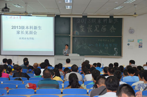 9月7日,水电院在江宁会议中心召开2013级本科新生见面会。会上,学院顾冲时院长首先表达了对新生的殷切希望。随后,院党委张展羽书记给新生做了入学教育第一场报告,全面介绍了学校、学院的历史和发展历程。最后,各 系主任又分别介绍了水利水电工程专业和农业水利工程专业的整体情况和特色。