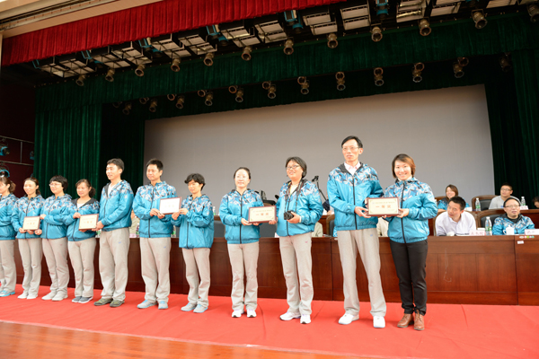 高辣文 广播操代表队,在经过一个多月的学习排练,终于取得了好成绩。9月25日学院趣味运动会上的表演,让队员们了解了自己的差距,之后的这段时间里大家每天上午下午2个单元的排练,从做广播操的力度,伸展的动作,弯腰的姿势,每个细节都仔细琢磨,临上场的间隙,大家还在排练,功夫不负有心人,当听到工会主席金华宣布 高辣文 获得一等奖的时候,大家欣喜得喊出了声。