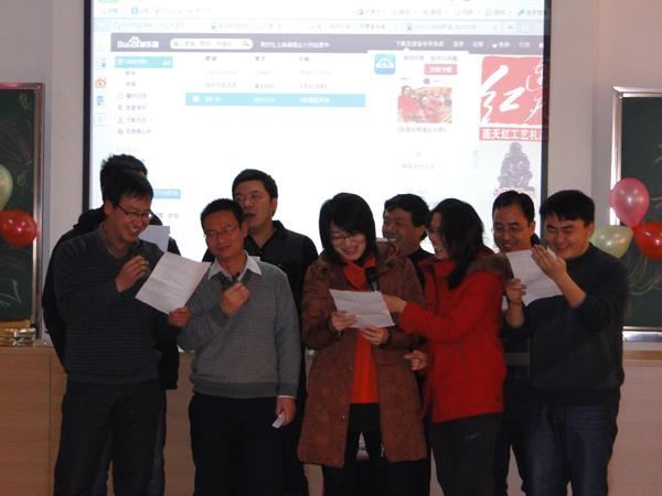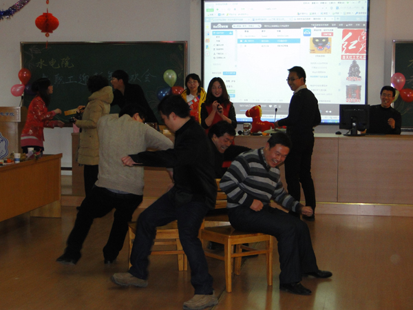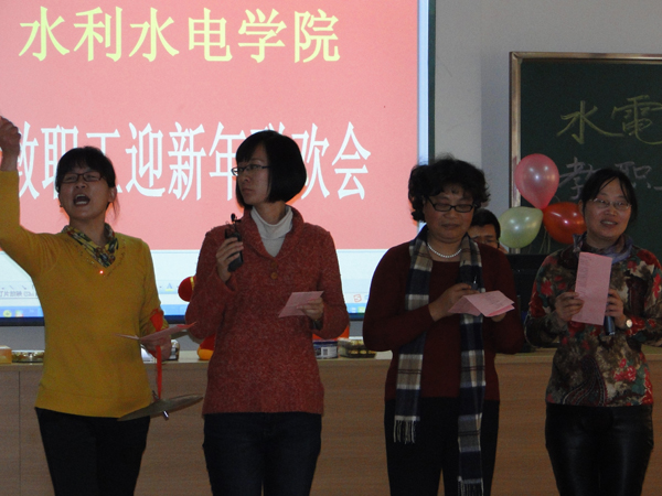 一首热情洋溢的开场舞“卓玛”拉开了联欢会的序幕。张书记宣布联欢会正式开始,顾院长总结了2013年学院取得的成绩。接下来是学院各教工支部表演节目,水工支部表演的“三句半”,诙谐幽默,很快带动现场一片笑声;水利水电支部表演的手风琴伴奏合唱、水力学支部的合唱“当”以及农水支部的男女六重唱“青春的小鸟”让很多人都忍不住跟着唱了起来;两办支部的手语歌“生命之河”,更是将联欢会推向了一个小高潮。节目中间还穿插了很多有趣的小游戏,充分调动了大家参与的积极性,组成好友档、夫妻档等各类组合,热热闹闹过了一把游戏瘾,掀起了联欢会的一个个小高潮,最令大家惊喜的是,张书记抢答歌名,还为大家即兴演唱了一首“小白杨”,成为全场的一大亮点。