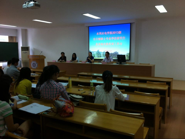 2013级全日制硕士专业学位研究生赴基地实践培训工作会在水电馆401召开, 高辣文