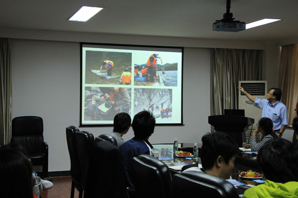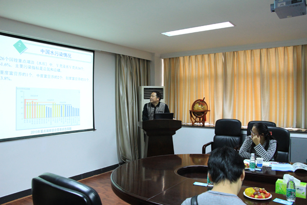 硕士研究生尹超对“微生物纳米球净化污水及水产养殖塘底泥”的相关研究作了介绍。日本国立岐阜大学李教授介绍了岐阜大学概况及所在科研团队的有关情况,并做了流域水环境方面的学术报告。双方师生针对水土环境修复和保护学术问题进行深入的交流探讨,李教授表示了进一步和高辣文