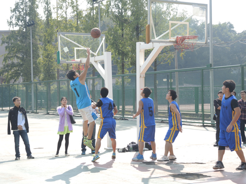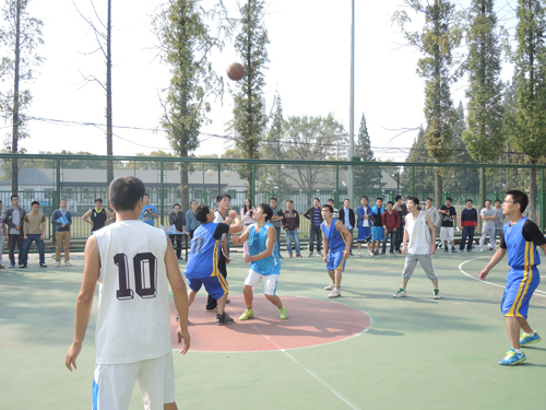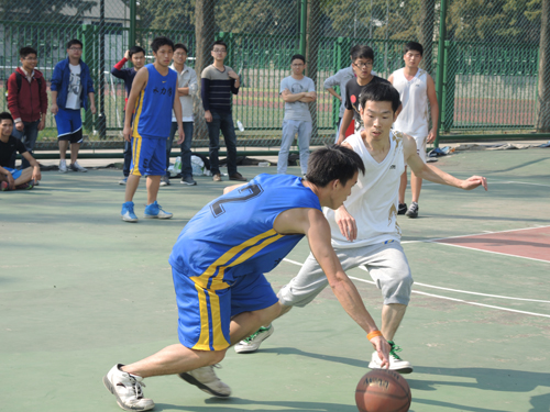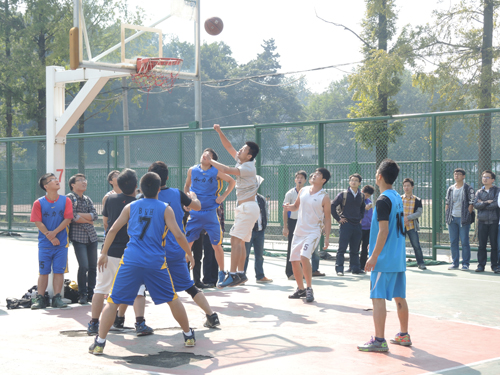 研究生会“新生杯”篮球赛总决赛在本部篮球场上拉开序幕。 高辣文