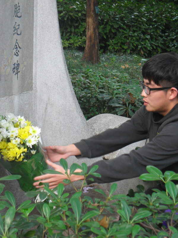 学生代表从葬地献花,全体参与者行鞠躬礼,活动过程庄严肃穆。档案馆专家侃侃而谈向我们讲诉了抗日战争的悲惨历史,传达了国家公祭日的设立的意义,不仅是缅怀过去,更是向全世界传递中华人民热爱和平、维护和平的决心。
