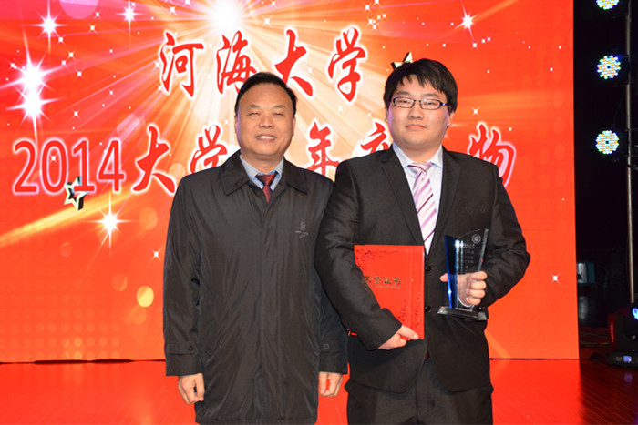大学生年度人物(全校仅1人)。吴中如院士为他撰写的颁奖词:自主招生入河海,对水利有着特殊的情怀;身为金陵人常过家门而不入,实验室里总有他忙碌的身影和沉静的思考。他深知“非学无以广才,非志无以成学”,源于思考、始于质疑的精神不断激励他前行,拥有逾二十项专利、多项竞赛获奖和国际三大检索收录论文的他也拥有勤学与谦逊的品质。在科技创新的道路上,他坚信,“脚不止,路无涯”。