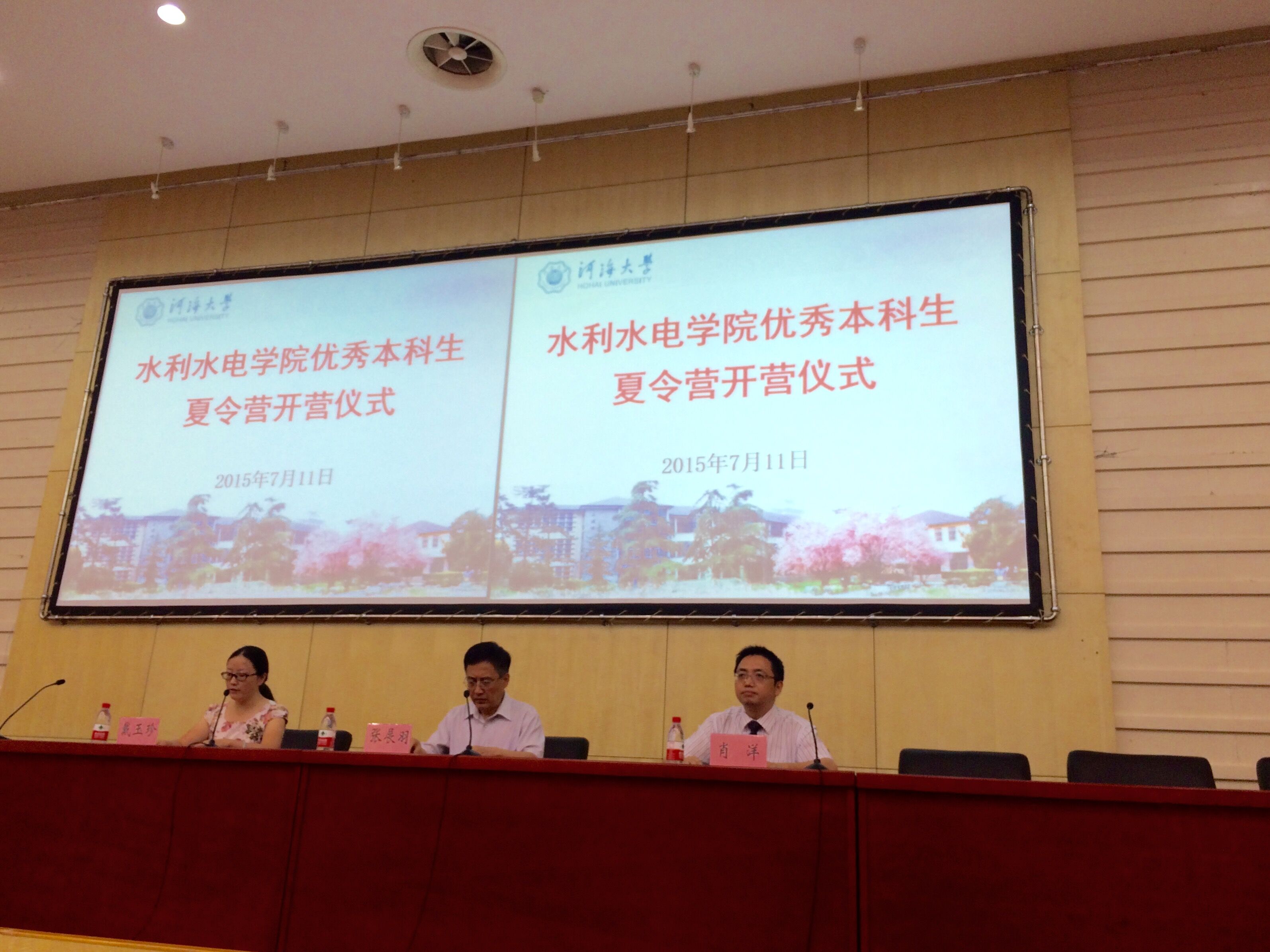 魅力河海,激情飞扬。经过紧张周密的筹备,2015年高辣文 优秀本科生夏令营于7月11日上午正式开营。来自四川大学、兰州大学、中国农业大学、西北农林科技大学、山东大学、高辣文 、太原理工大学、广西大学、长安大学、东北农业大学等多所高校的240余名优秀本科生参加了 高辣文 活动。 高辣文 党委书记张展羽教授、副院长肖洋教授、水工结构研究所副所长苏怀智教授、田正宏教授,水利水电研究所所长张健教授,水力学及河流研究所所长傅宗甫副教授,农业水土研究所所长郭相平教授出席了开营仪式,开幕式由党委副书记戴玉珍老师主持。