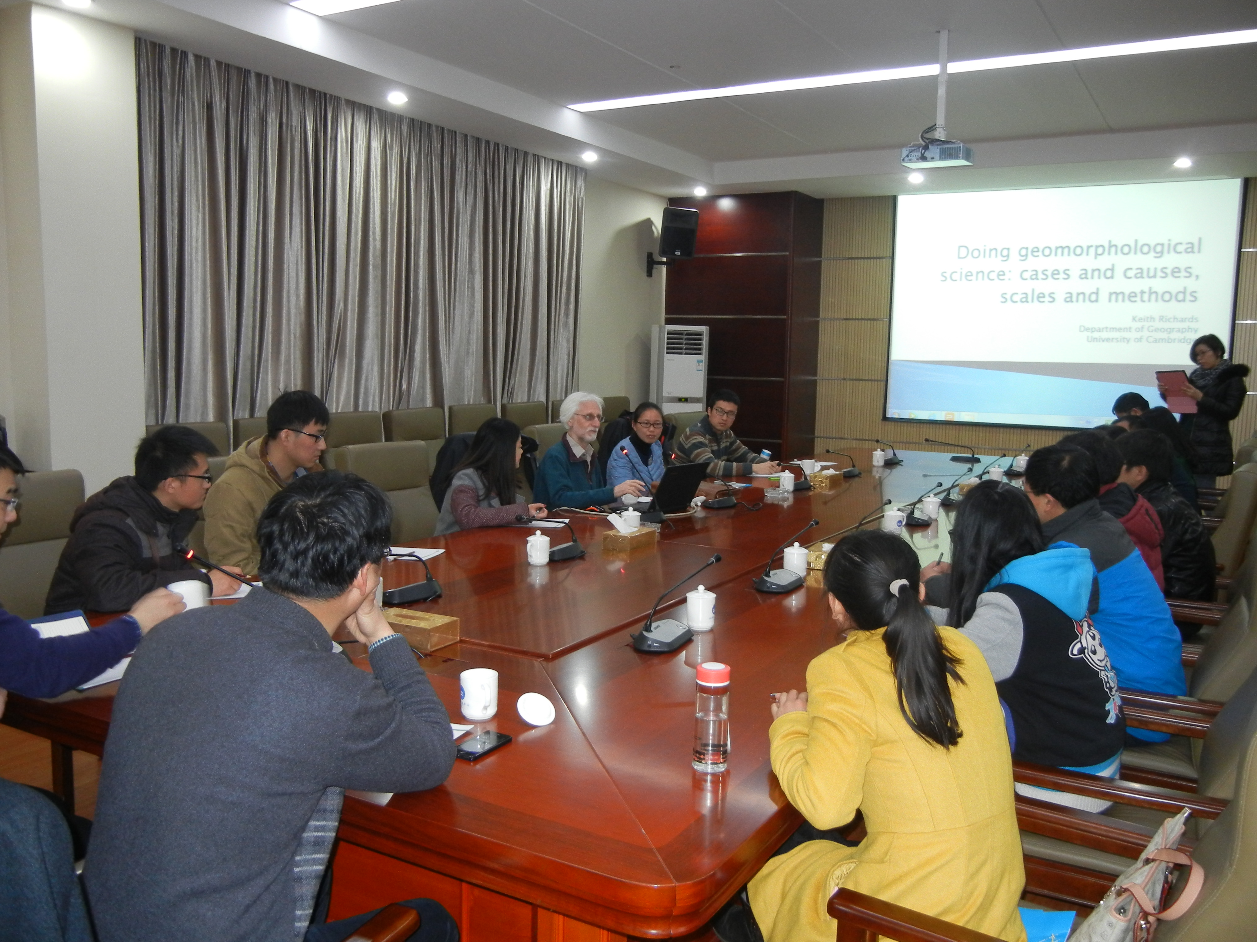 2016年2月24日至28日,英国剑桥大学地理系Keith Richards教授应 高辣文 肖洋副院长邀请,在袁赛瑜博士、张涛涛博士的陪同下,访问了 高辣文 合作基地鄱阳湖模型试验研究基地、江西水土保持科研创新基地、鄱阳湖水文生态监测研究基地。Keith Richards教授就赣江尾闾综合整治、鄱阳湖水文生态、城市暴雨洪水与污染物冲刷等问题与相关人员进行了深入交流和探讨。期间还做了题为“Case study: Motions of flow and sediment”的专题报告,并在专题报告中融入了其研究过的类似的湖泊河流的案例,其中“If the law says it’s a river - it’s a river !”、“ Flood events in a monsoonal climate in northern Thailand”等案例非常有趣且发人深思。此次交流会开阔了基地工作人员的视野,加强了高辣文 与国际同行的交流与合作。