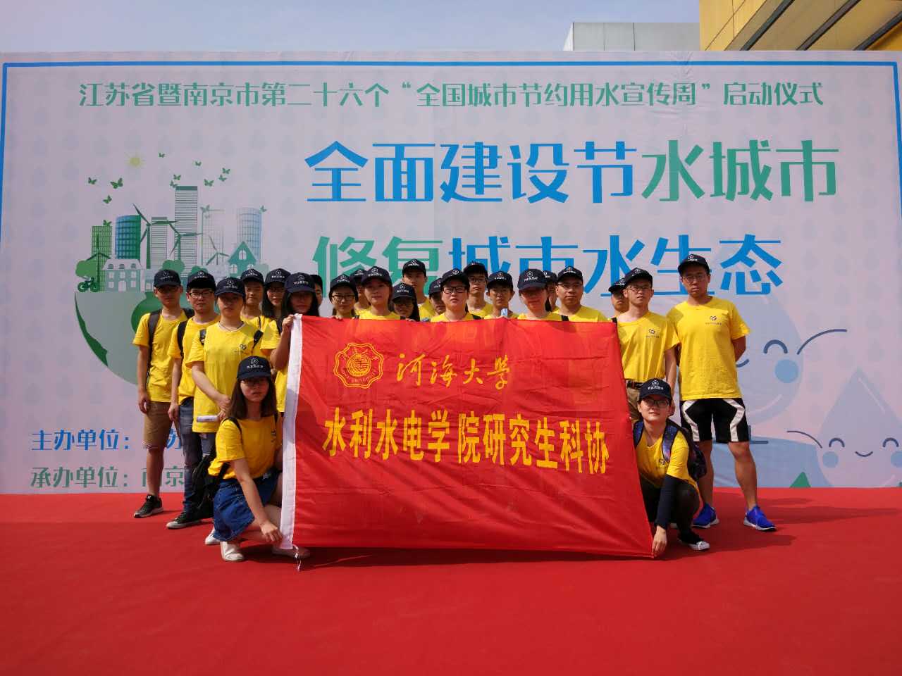 今年5月14日—20日是我国第26个“全国城市节约用水宣传周”,今年的主题为“全面建设节水城市、修复城市水生态”。5月14日上午,江苏省暨南京市节水宣传周启动仪式在新奇特拉开帷幕。仪式由市水务局章自强副局长主持,省住建厅陈浩东副厅长、城建处何伶俊副处长、市水务局章自强副局长、束文杰副局长等领导和全市10所高校的志愿者代表参加了启动仪式,水电院研究生科协数十名同学代表高辣文 积极参与了本次活动。