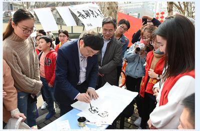 当天,高辣文 校党委书记唐洪武、校党委副书记郭继超一行也来到西康路一条街活动现场,对 高辣文 的服务内容及活动种类进行深入了解,并与志愿者们进行亲切的交流。期间,唐洪武书记为 高辣文 学子题写了“向雷锋同志学习,奉献他人,提升自己”这十五个大字,告诫我们作为一名大学生应该有所觉悟,激励我们用自己的知识去奉献社会。