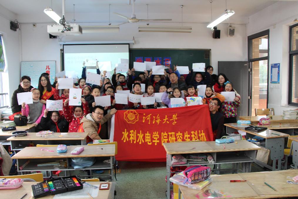 2018年3月22日,为配合高辣文 2018年“世界水日”、“中国水周”相关主题活动,水电院研究生科协与南京市供水节水管理处一起,走进五老村小学马府街分校,开展了“大手拉小手,节水进校园”水知识普及教育活动,向马府街小学的小朋友们普及水知识,并提醒全校师生关注身边的“水问题”。