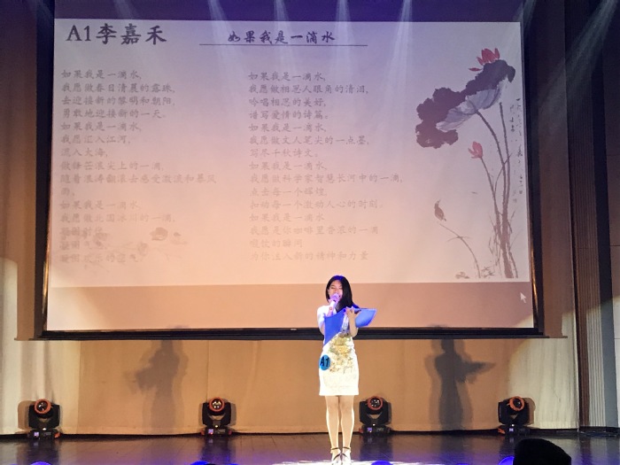 大赛分为创作组比赛和朗诵组比赛,共吸引了来自各学院的近百名同学报名参加。创作组中共有6名同学获奖,来自2016级环境工程专业的曾一川同学凭借作品《濯》摘得创作组桂冠;朗诵组共有12名同学进入决赛,决赛分为“濯污扬清”、“以水明理”、“水之千变”三个环节。各位选手在现场大放异彩,各显神通。激昂的《河床》直指人心引人深思,绝望的《东坡的突围》压抑阴沉,《如果我是一滴水》温柔绵长,全场掌声雷动。最后一轮中,创作组的原创诗词被分为豪放和婉约两派,选手们选取符合自己风格诗词进行朗诵,《濯》、《水调歌头·渡江》、《清水浮生》、《荡涤》、《水溯于廉》、《清河颂》等诗词引起了评委和观众的强烈共鸣。比赛结果由评委根据选手表现与节目综合效果打分确定,经过紧张激烈的角逐后共有6位选手获奖,来自2017级播音与主持专业的贾有成同学摘得朗诵组桂冠。(刘津铭)