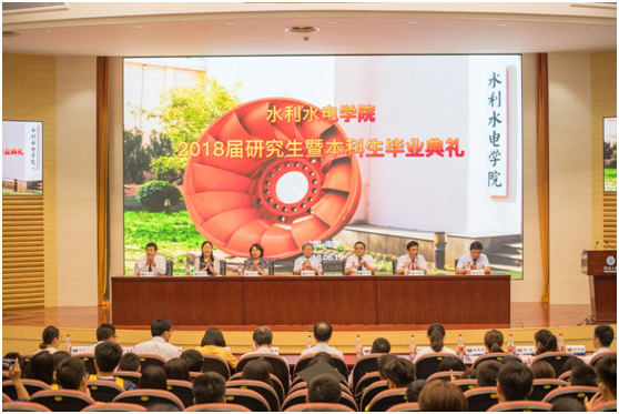 此后,研究生毕业生代表宋迎俊同学、本科毕业生代表窦延虹同学相继上台发言,他们在表达了对大学时光的怀念之情外,更表达了对母校、老师、同学的感激和不舍之情,以及对母校和同窗的祝福,和作为“水之子”的自豪与责任感,引起强烈共鸣,赢得了热烈的掌声。