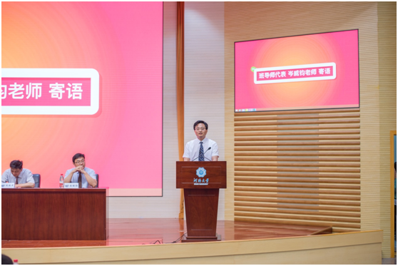 班导师代表岑威钧老师用诙谐幽默的语态为即将毕业的河海学子送上几点殷切期望:第一,调整状态,砥砺前行,不断拼搏进取。在将来的学习和工作中要耐得住寂寞,受得了挫折,经得起风雨,肯吃苦,能吃苦,勇敢面对人生中每一次挑战,时时体现河海水电人不屈不挠的拼搏精神!第二,心系河海,感恩母校,要常回家看看。今天你们以学校为荣,明天学校以你们为荣!