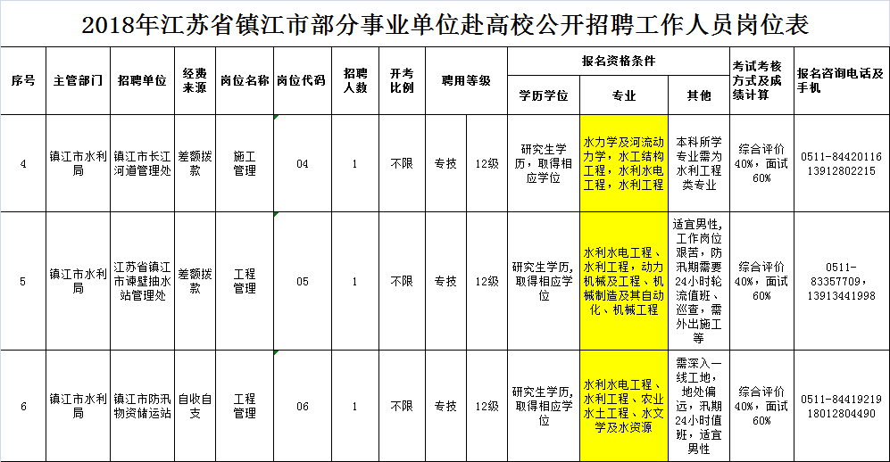 2018年江苏省镇江市部分事业单位赴高校公开招聘工作人员岗位表.xls