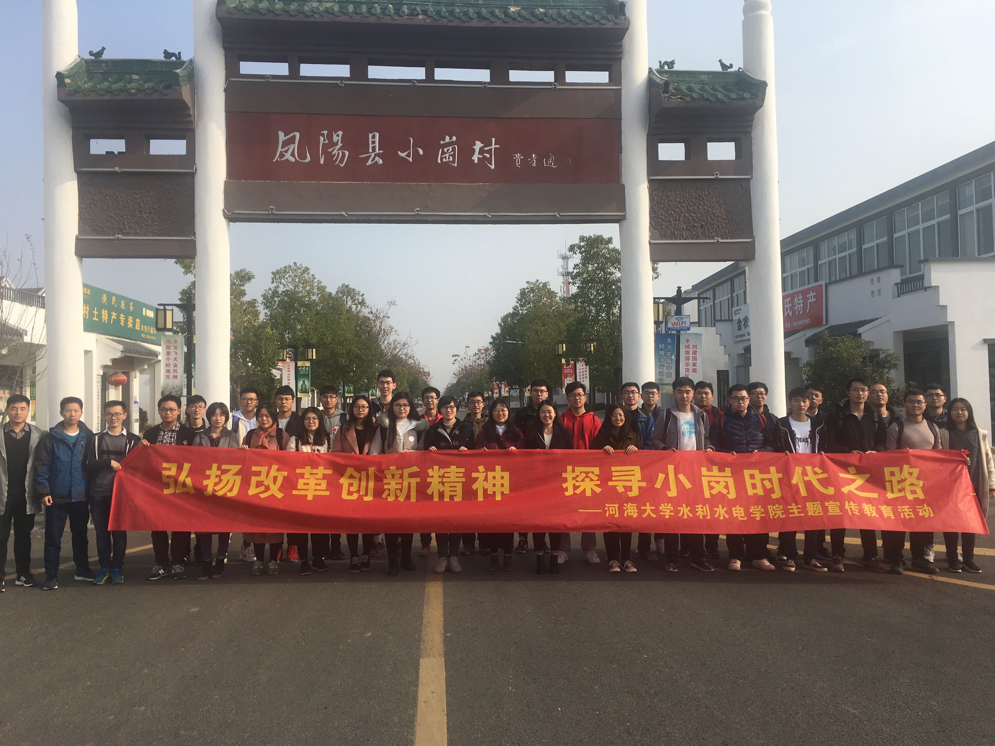 举办了以“弘扬改革创新精神,探寻小岗时代之路”为主题的庆祝改革开放40周年主题宣传教育活动,学生党员和学生骨干在辅导员笪步源、曲永胜老师的带领下赴中国农村改革发源地小岗村寻访体验。