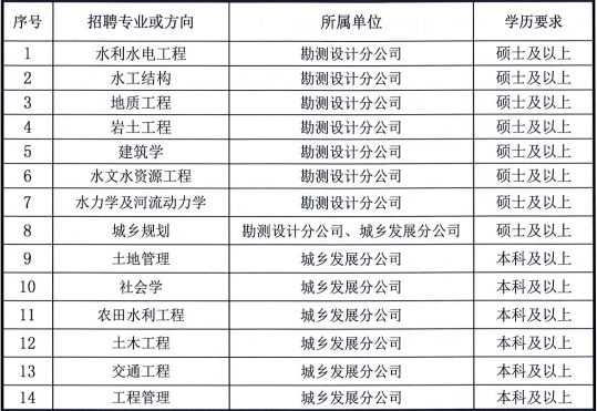 招聘单位:中国电建集团成都勘测设计研究院有限公司