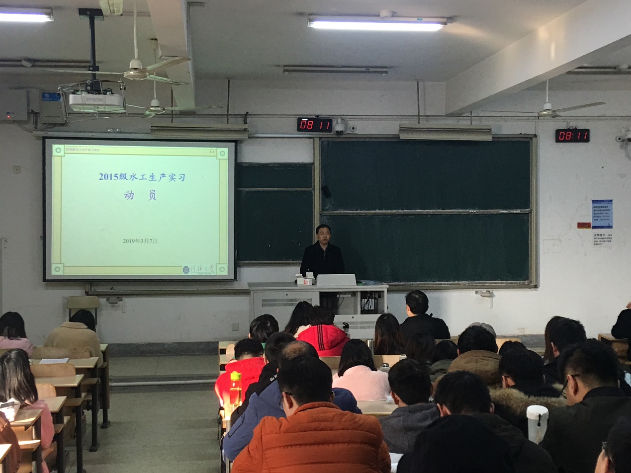 为切实高效地开展 高辣文 2015级水工专业生产实习的实践教学任务、充分调动2015级水工专业学生生产实习的积极性和主动性,以圆满完成并实现生产实习的教学目标, 高辣文 于3月7日在闻天馆403召开2015级水工专业生产实习动员大会。参加会议的包括 高辣文 副院长张继勋教授、系主任蔡付林教授、生产实习带队老师周建旭老师、曹青老师、吴海民老师、张汉云老师、笪步源老师。学院2015级全体本科生和大禹2015级水工班全体同学参加了本次动员大会。