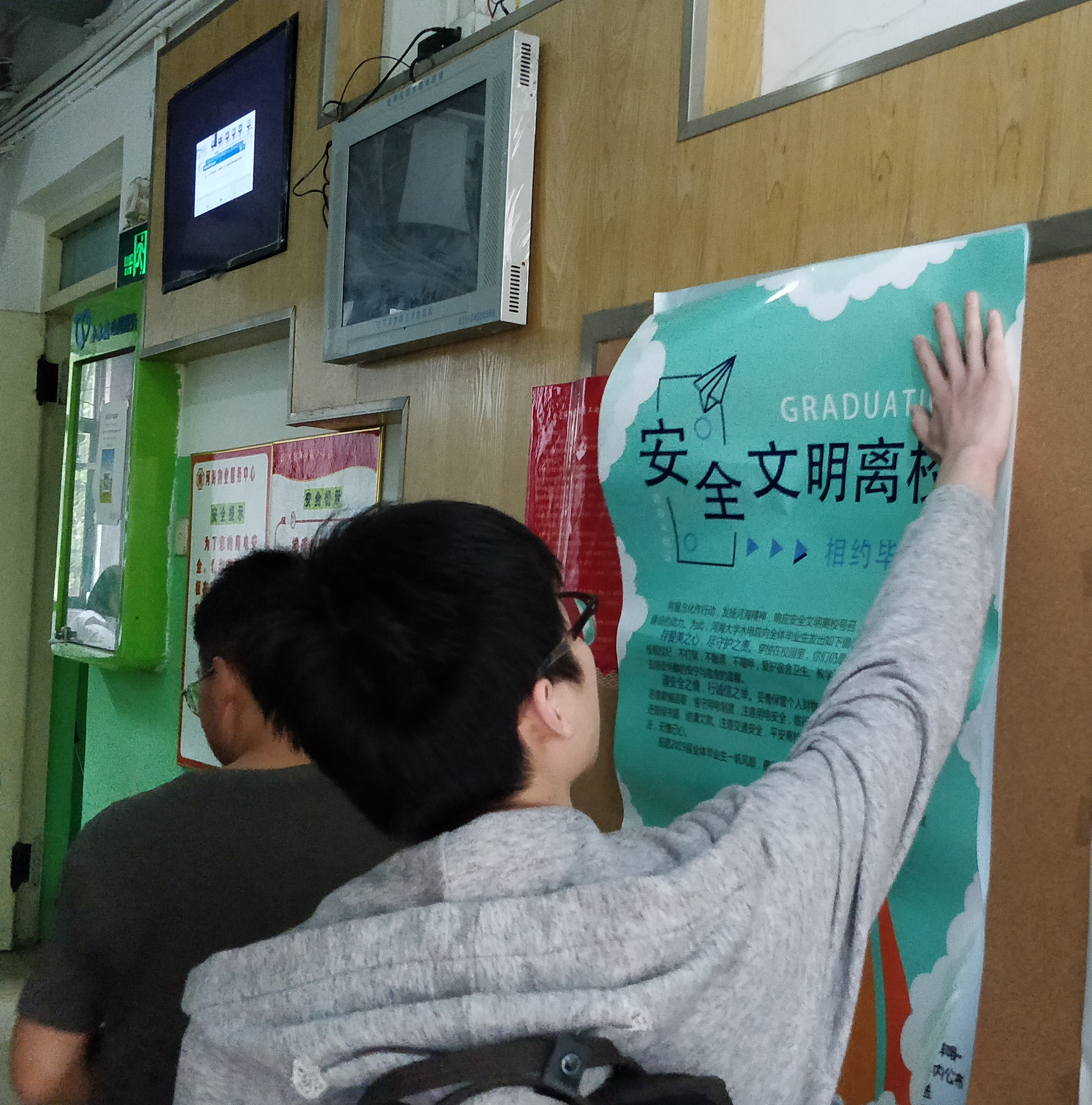 2019年6月, 高辣文 开展了毕业生“安全离校”活动。本次的活动分两个部分展开:第一,在各毕业生宿舍楼道张贴主题宣传海报,向毕业生们传播安全离校理念;第二,在一食堂门口开展“感恩母校无私培育情,倡导安全离校风”的签名活动,组织路过毕业生们在横幅上签名纪念。大家响应积极,并深情感谢母校的三年栽培。