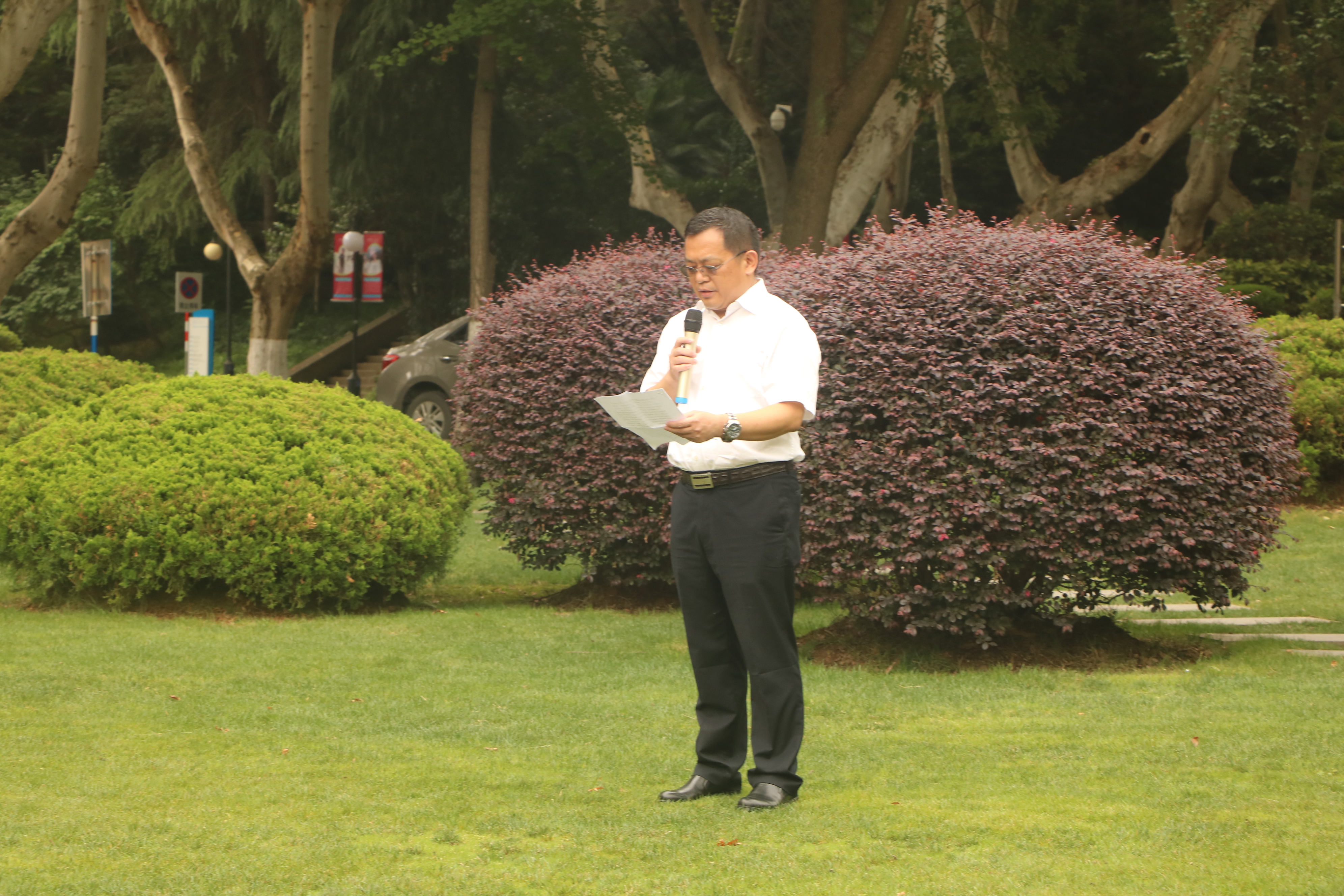 首先进行了升旗仪式。伴随着澎湃激昂的《义勇军进行曲》,全体师生党员行注目礼,齐唱国歌,鲜艳的五星红旗徐徐升起,全体同志的爱国情怀在心中激荡。