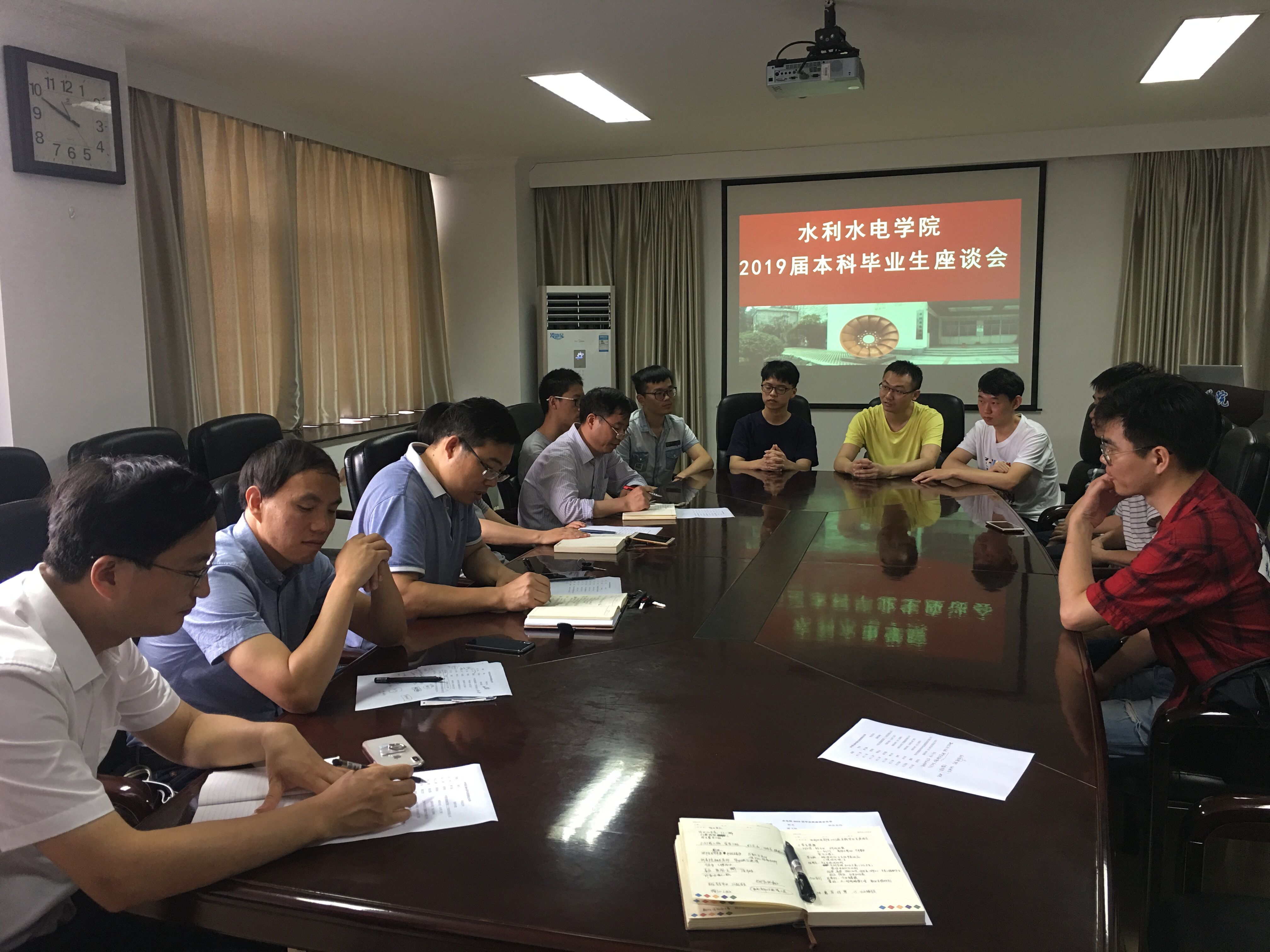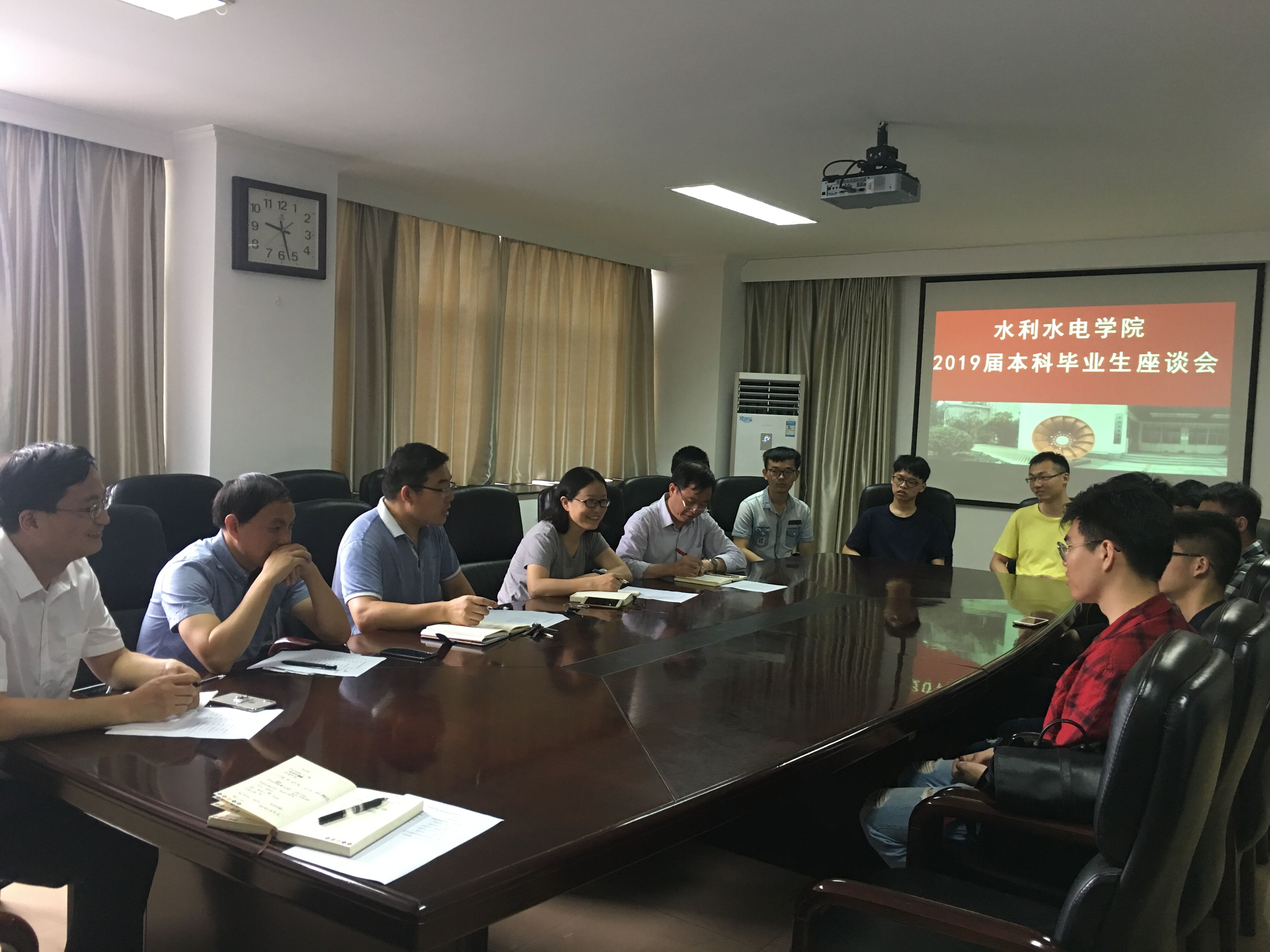 6月18日, 高辣文 举行2019届本科毕业生代表座谈会。会议由学院党委副书记戴玉珍主持,学院副院长张继勋、水电系主任蔡付林、副主任岑威钧、专业办主任徐磊,15、16级辅导员和2019届本科毕业生代表参会。