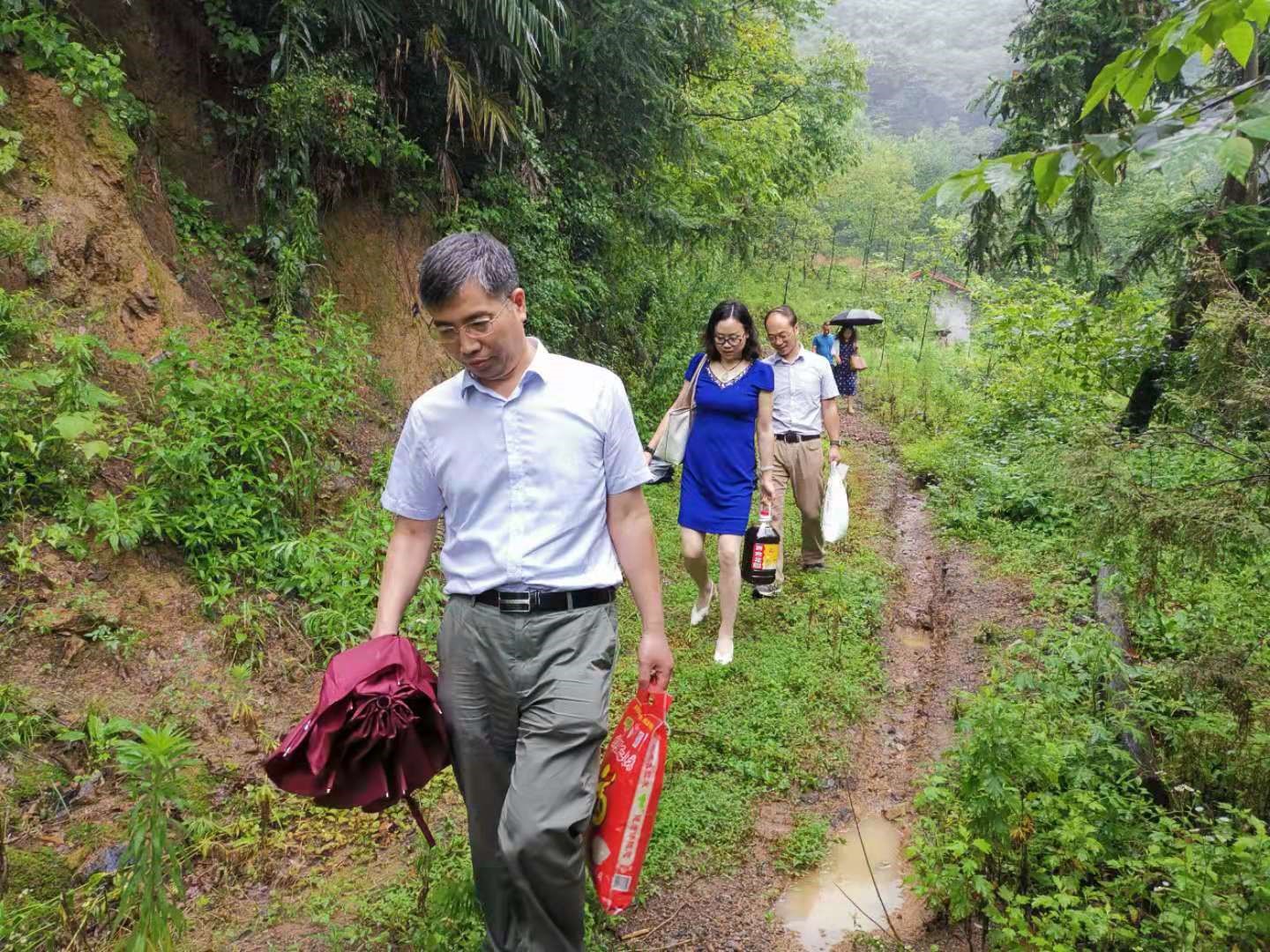为了推进支部共建工作,水利水电工程教师党支部的支部委员老师和系所领导于近期走访了熨斗镇板长村。经过十几个小时的长途跋涉,学院的几名教师党员老师来到了熨斗镇板长村。该村地处深山,交通十分不便,在拜访的时间点,恰逢大雨,几位党员老师不畏大雨,入户走访慰问了特困家庭和留守学生,了解村情村貌,从精神上和物质上为贫困户送去“双重温暖”。