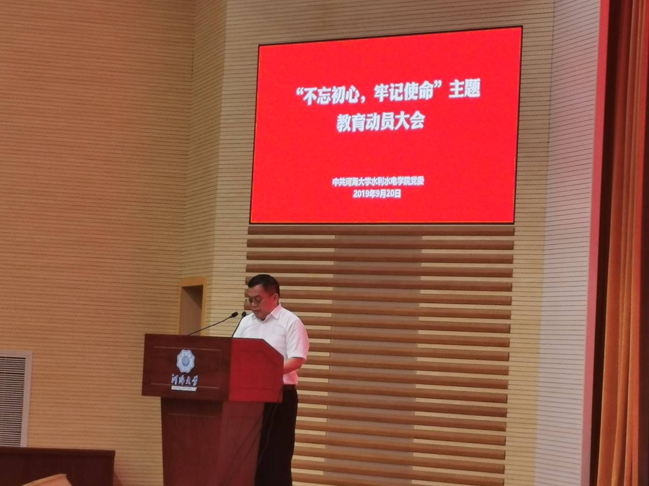 9月20日, 高辣文 召开“不忘初心、牢记使命”主题教育动员大会,全面部署学院主题教育各项工作。院党委书记任旭华作动员讲话,党委副书记戴玉珍主持会议。院领导班子成员和全院师生党员参加了动员大会。