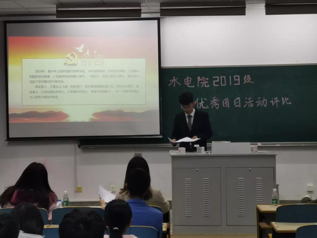 2019级 高辣文 “我的大学100天”主题团日活动渐入尾声,在过去繁忙但却充实的一百天中每个水工班级都在为创建丰富多彩的且充满意义团日活动而努力奋斗。为了推选出优秀班级团日活动代表 高辣文 参加校级优秀团日活动评选,在经过前期充分准备后,水电院团委于2019年12月3日在致用121教室组织一场最佳团日活动评选会。