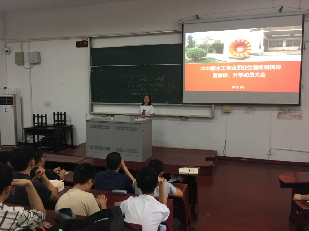 9月6日,我院2020届水工专业职业生涯规划指导暨保研、升学动员大会顺利举行。副院长张继勋、副书记戴玉珍、教学秘书蒋慧敏、16级辅导员笪步源及2020届全体本科生参加会议。