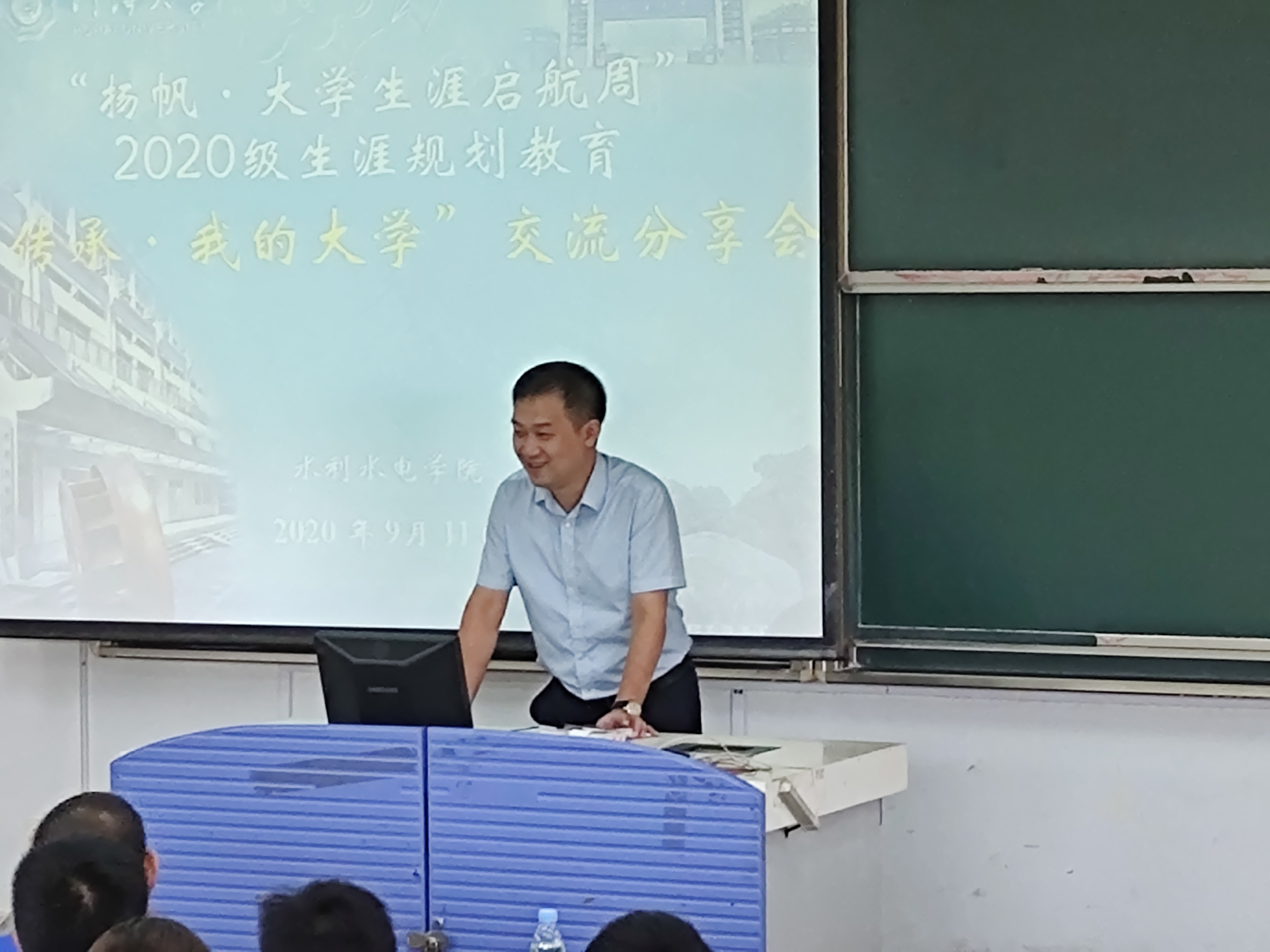 9月11日,2020级扬帆·大学生涯起航周活动之“传承·我的大学”交流分享会在江宁校区高B201如期举行,2020级全体同学以及辅导员参加分享会。分享会邀请 高辣文 2003届校友、南京市水务局基本建设和科技处副处长施丛丛,三峡电能(湖北)有限公司副总经理卞韬略主讲,院党委副书记王方主持。