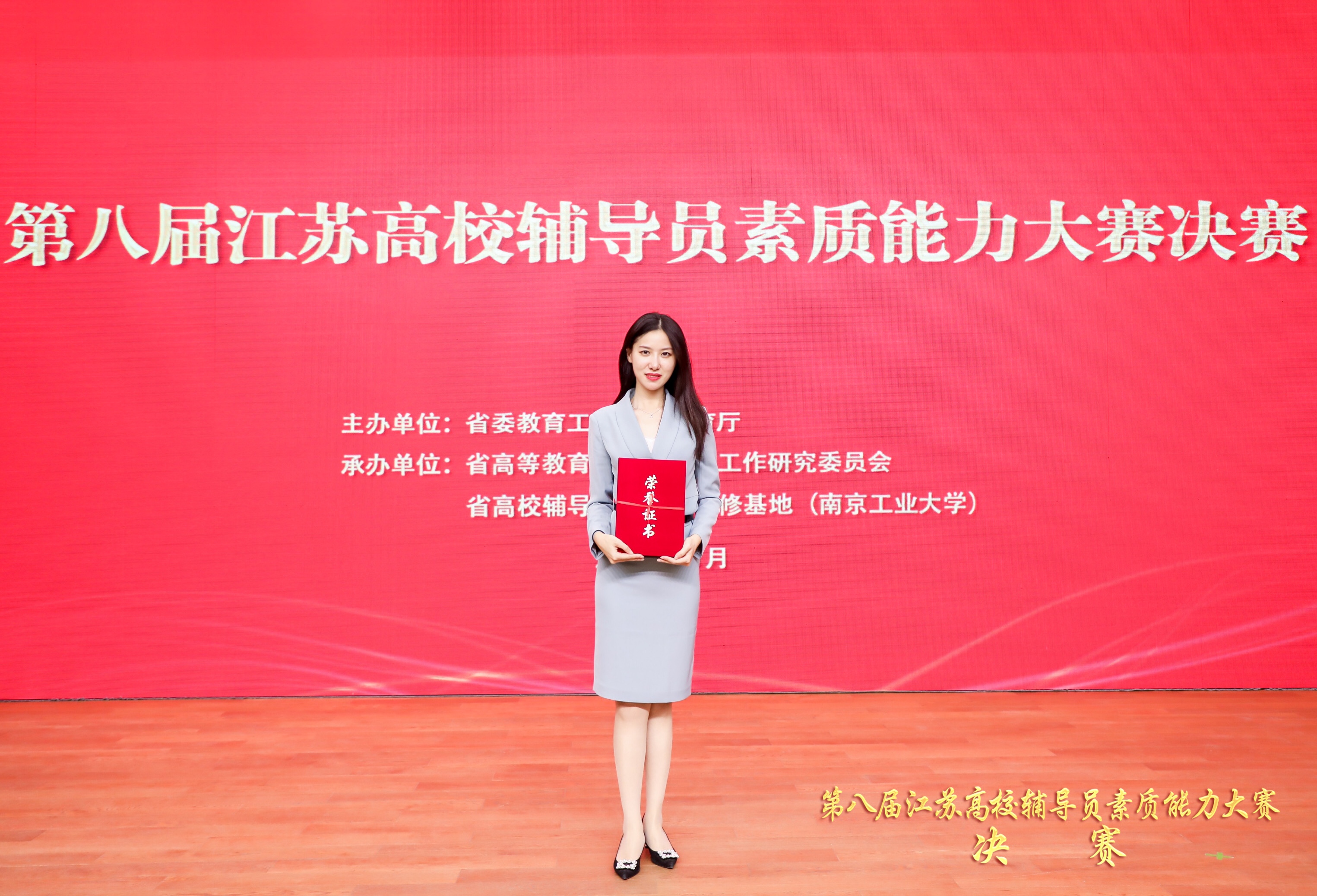11月27日至28日,第八届江苏高校辅导员素质能力大赛决赛在南京工业大学成功举办。 高辣文 2018级辅导员姜帆老师,与来自全省40所高校的优秀辅导员同台竞技、尽展风华,以总分第二的好成绩荣获一等奖!