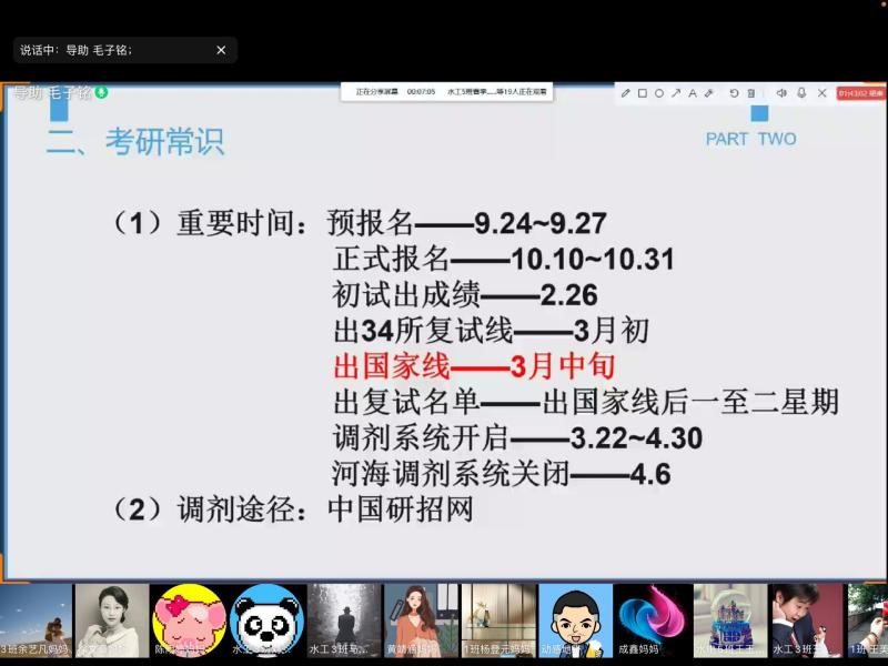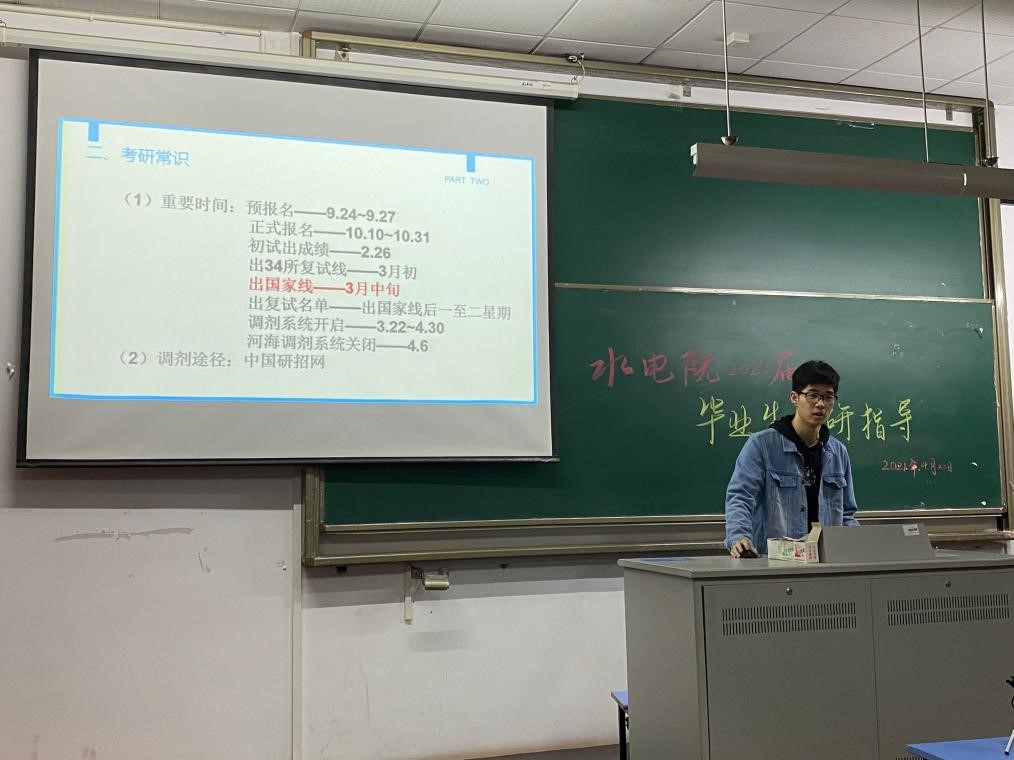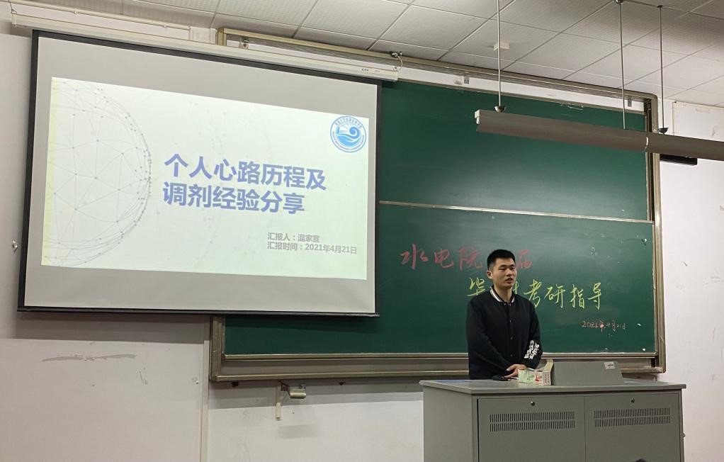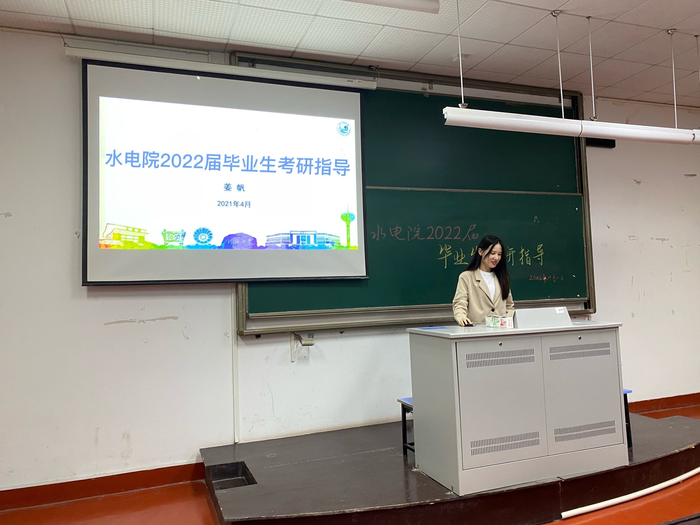 4月21日晚, 高辣文 召开水电院2022届毕业生考研指导会,会议由水电院2018级本科生辅导员姜帆老师主持,2017级本科生刘雪娇、李新、温家宣和张树立分享,水电院2018级全体本科生参会,学生家长在线上会议同步参与。