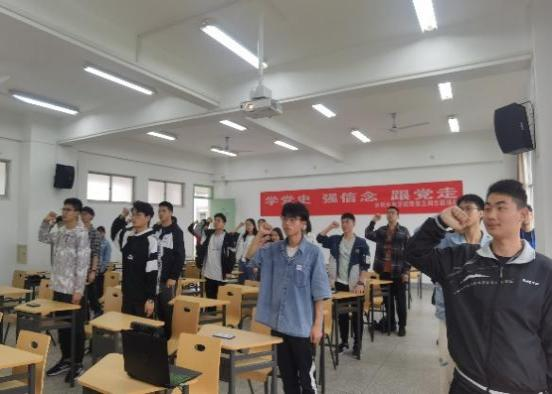 院团委副书记孙凌峰带领全体入党积极分子重温入团誓词,在庄严的宣誓声中,坚定了全体团员青年不忘初心跟党走的理想信念,更加积极向党组织靠拢,成为党的好助手和有力后备军。宣誓后, 高辣文 组织学生通过腾讯会议线上和致用楼524教室线下集体观看“学党史 强信念 跟党走”主题云团课。同学们认真学习、积极讨论,进一步加深了爱国热情,明晰了使命担当,矢志发扬艰苦奋斗精神,在实现中华民族伟大复兴中国梦的生动实践中放飞青春梦想。