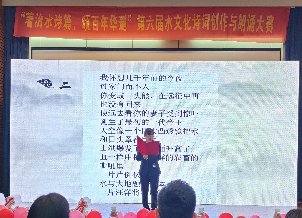比赛中,选手们声情并茂、饱含感情的朗诵了《水利人赞歌》、《长江礼赞》、《江河安澜,水利人在路上》、《党旗颂》、《致河海》等多首原创作品,讴歌了近年来我国水利事业发展取得的巨大成就及良好的生态环境、人文风情,字里行间表达了对祖国、对水文化的热爱、眷恋之情,也让现场观众领略到诗歌朗诵的无穷魅力,生动而真切地诠释了诗歌的内涵,赢来了现场观众的阵阵掌声。