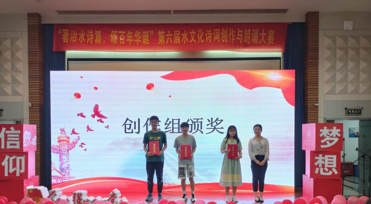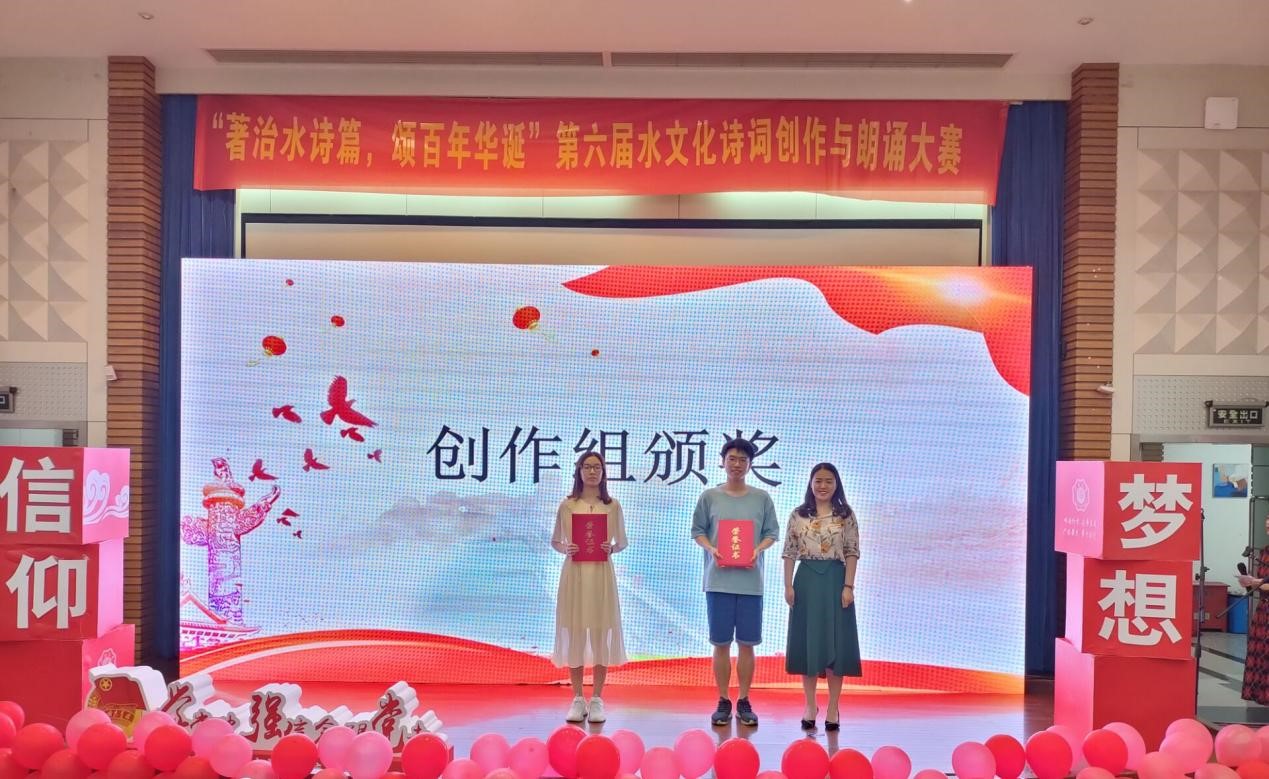 创作组中来自大禹学院的黄琤同学凭借作品《念奴娇.建党百年水利献礼》摘得桂冠,农业科学与工程学院2020级张盛芊同学创作的《放歌中共成立一百周年》、理学院2020级张汛同学创作的《念奴娇·忆百年华诞》获得创作组二等奖,大禹学院2018级袁海钰同学创作的《天河定底神珍铁》、水文水资源学院2020级何欣然同学创作的《劈波斩浪》、地学院2019级周成林同学创作的《七律·水利颂》、农业科学与工程学院2020级范佳怡同学创作的《定风波·治水人》获得创作组三等奖。