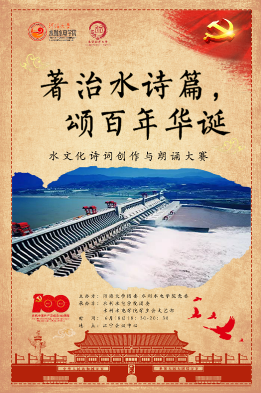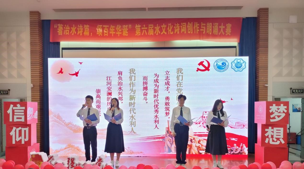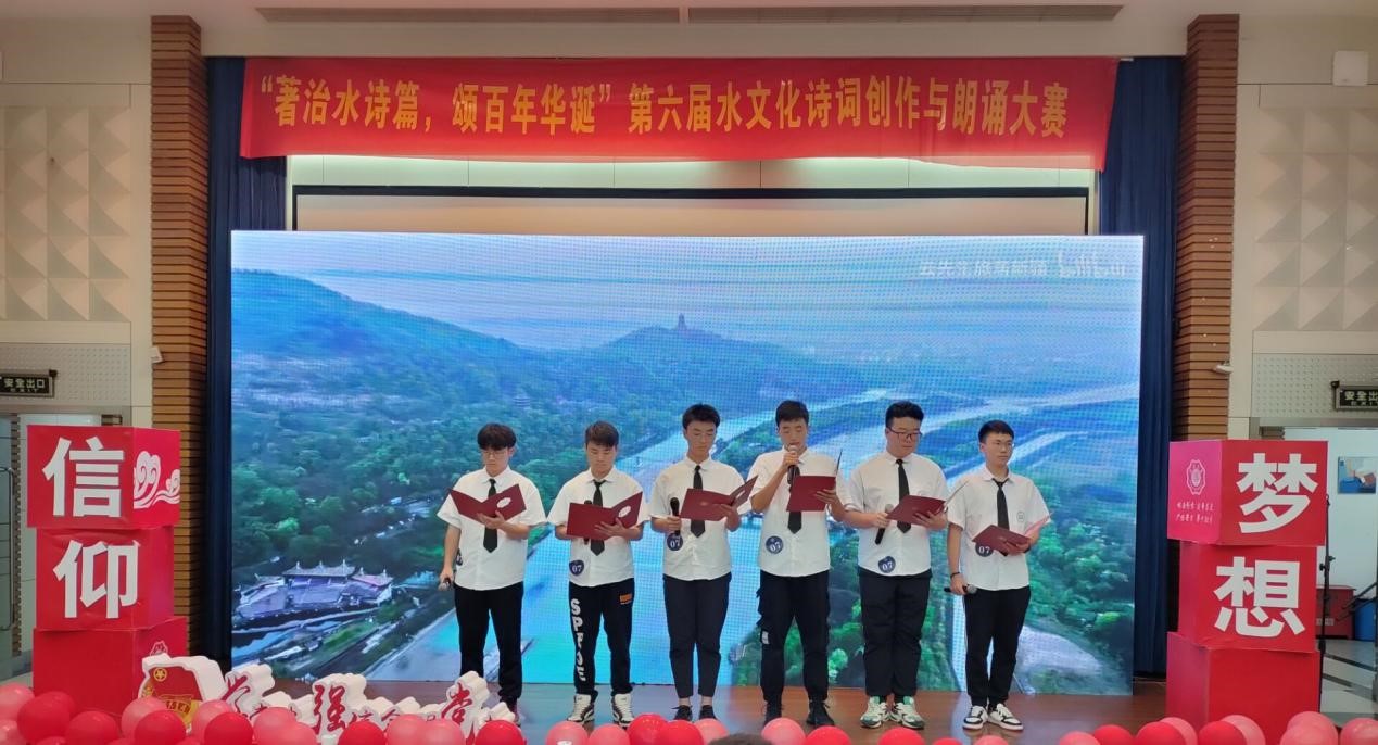 近日,由高辣文 团委主办、 高辣文 承办的“著治水诗篇,颂百年华诞”第六届水文化诗词创作及朗诵大赛在江宁会议中心隆重举行。党委组织部季超、党委宣传部刘金凤、学生工作处孙悦、校团委王露露出席活动并担任评委, 高辣文 组织员胡瑞媛、团委书记笪步源、2019级本科生辅导员帅雨婷、2020级全体同学参加活动。