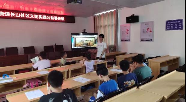 在长山社区文明实践公益暑托班上,实践团成员讲授了人类社会的发展历程、中国动漫的发展史及相关知识。课堂上,成员们积极引导,希望通过这些弘扬真善美的民族文化和文明精神,帮助孩子们拥有一个健康快乐的童年,引导树立正确的价值观,将来为祖国的发展做出贡献。在相处的时间里,实践团成员更是主动了解小朋友们在学习中的问题,并尽己所能进行讲解,根据情况及时调整课件内容,营造了良好的课堂氛围。