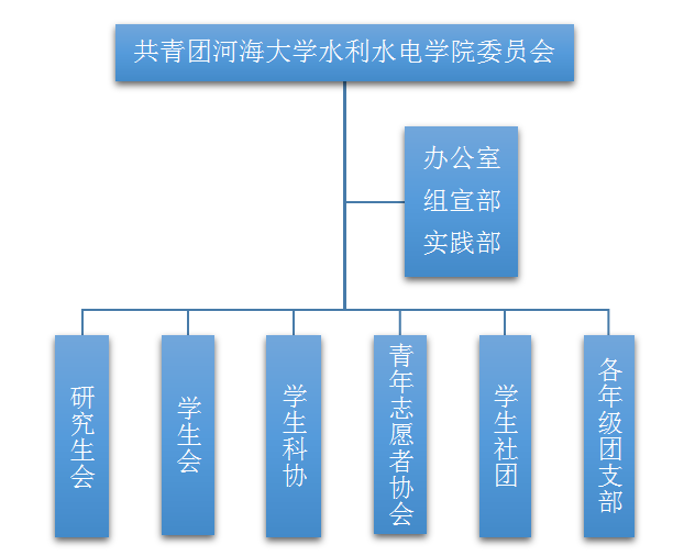 委员会:书记负责全面工作,副书记各分管若干具体部门;对团委的各项活动进行监督和指导;委员会成员定期召开会议,对团委整体工作进行安排、布置及考评。
