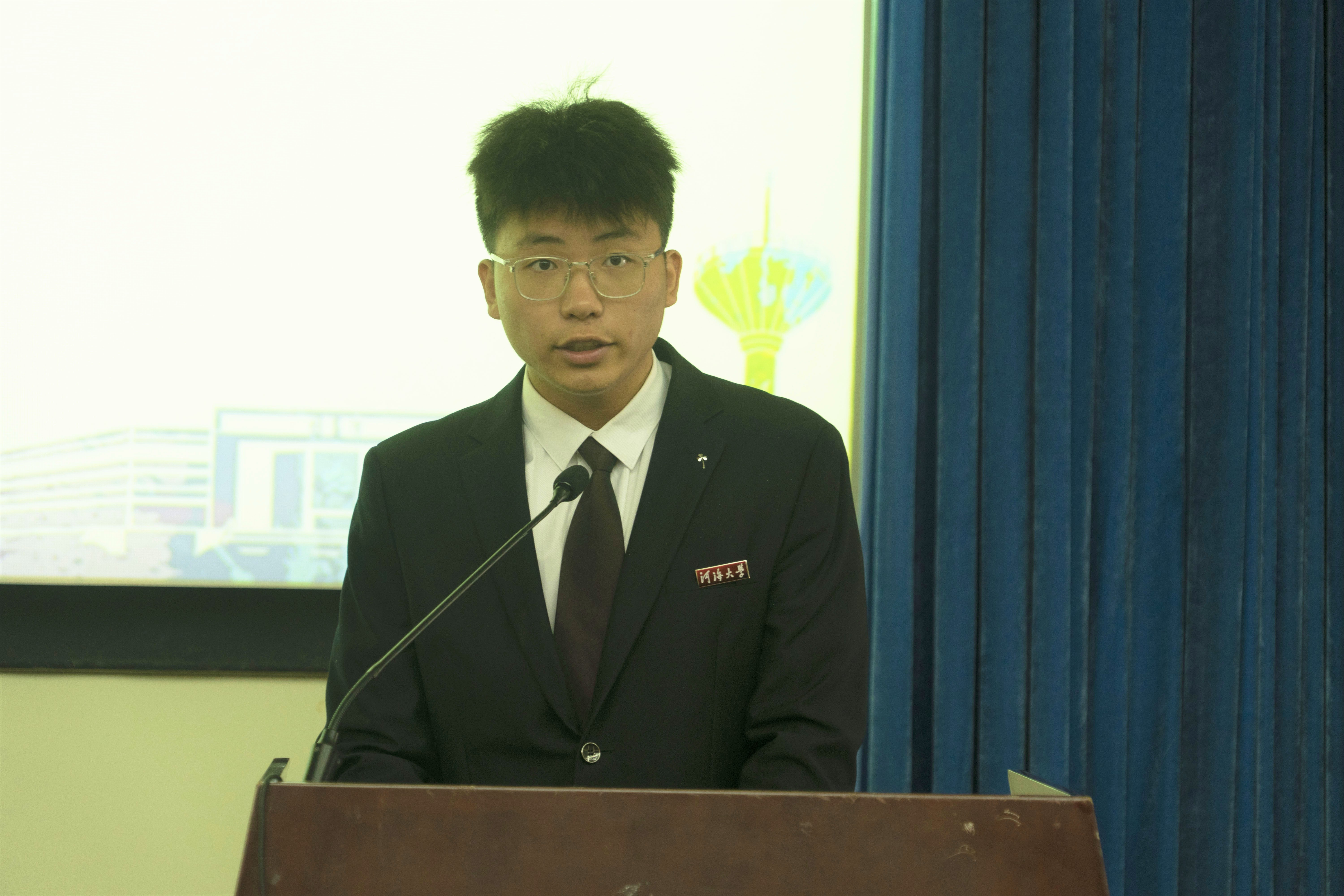 在校生代表2020级侯永驰同学在发言中分享了自己的学习生活经验。他提出要深化专业认识,培养独立意识,树立生涯目标,并通过河海平台来充实自己的大学生活。2021级新生代表李逸周同学则讲述了自己进入高辣文 后的感受,并对未来的大学生活做出规划和憧憬,表达了在大学生活中要实事求是、锐意进取,立志成为社会的脊梁的愿望。