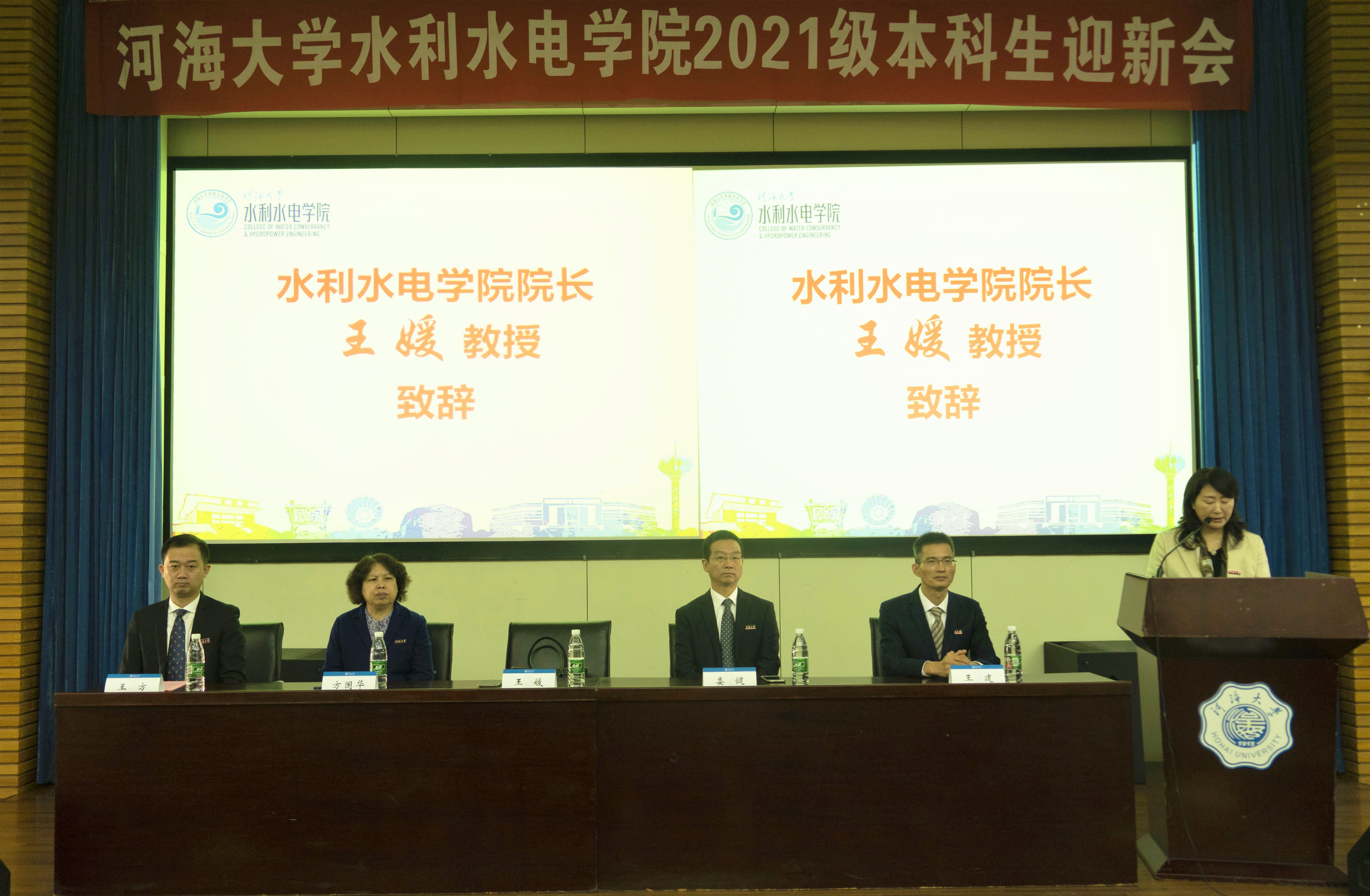 10月31日上午,水利水电学院2021级本科生迎新会在江宁校区会议中心隆重举行,院长王媛出席会议并致辞。院党委书记娄健、副院长方国华、副院长王建、党委副书记王方出席会议。学院相关系所负责人、2021级班导师、教学秘书,辅导员及2021级全体新生参加会议。会议由王方副书记主持。
