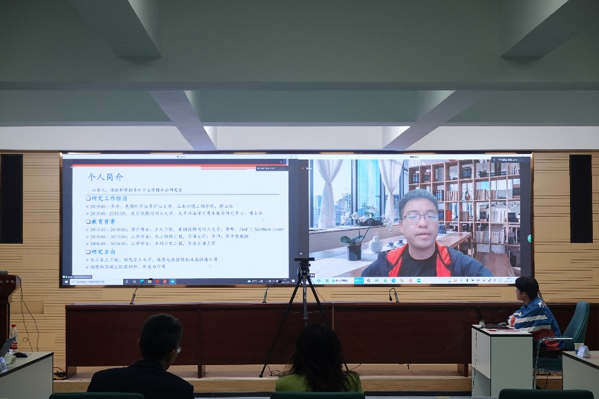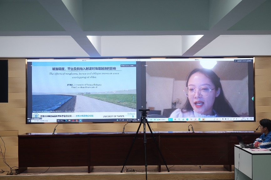 王媛院长介绍了高辣文 的历史沿革、文化底蕴、办学特色以及在人才培养、学科建设、科学研究等方面取得的成绩。她希望广大青年学者共同肩负起新时代中国水利科技工作者的责任,期盼并欢迎各位青年学者加盟河海、投身水利,成为建设祖国的主力军和担当民族复兴大任的时代新人。