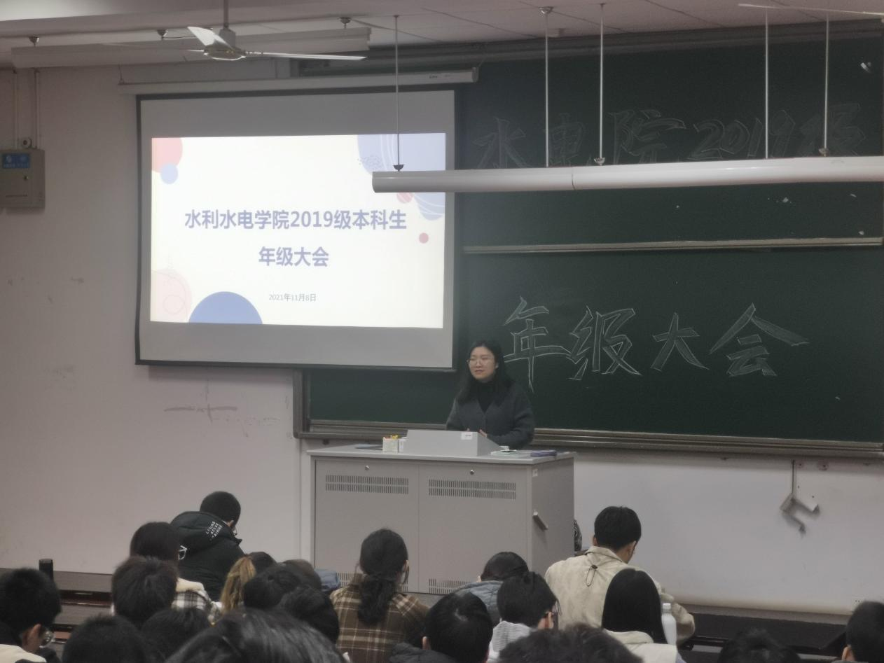 11月8日,为进一步帮助大三学生厘清生涯迷茫、明晰生涯目标、积蓄行动力量, 高辣文 召开2019级本科生年级大会暨生涯规划专题交流会。会议由2019级辅导员帅雨婷主持,2019级全体本科生参加。