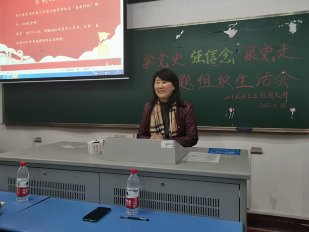 11月25日,2019级水工五班团支部开展“学党史,强信念,跟党走”专题组织生活会。 高辣文 王媛院长出席,2019级本科生辅导员帅雨婷以及2019级水工五班全体同学参加本次会议。