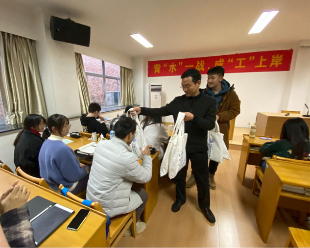 郑金海校长为考生们送上诚挚祝福。他充分肯定了学院为考研学子提供复习教室和备考支持的办实事举措,高度认可学院整体考研氛围和考生学习状态。他亲切地叮嘱同学们在最后冲刺阶段要保持良好的精神状态和身体健康,鼓励同学们要坚定信心,沉着应对,以饱满的状态迎接考试,力争考出好成绩。郑校长及学院领导为考研学子送上考研加油礼包,现场气氛热烈,师生融洽一堂。