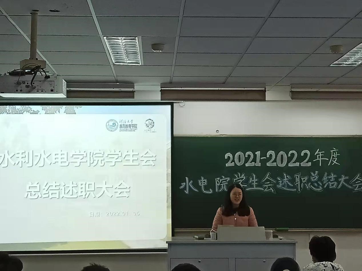 学生会主席团和各部门部长进行述职汇报。学生会副主席魏天琪同学从主席团、权益部、学习部、文艺部日常工作及承办活动进行了总结,并介绍了其切身参与其中的2021级迎新、2021学生组织招新、水电院第二十五次学生代表大会等活动。她希望学生会成员们能继续发扬高效、严谨、团结、敬业的精神,精准定位自身职责,实现自身与整个学生会的双重进步。(图、文/钱家豪)