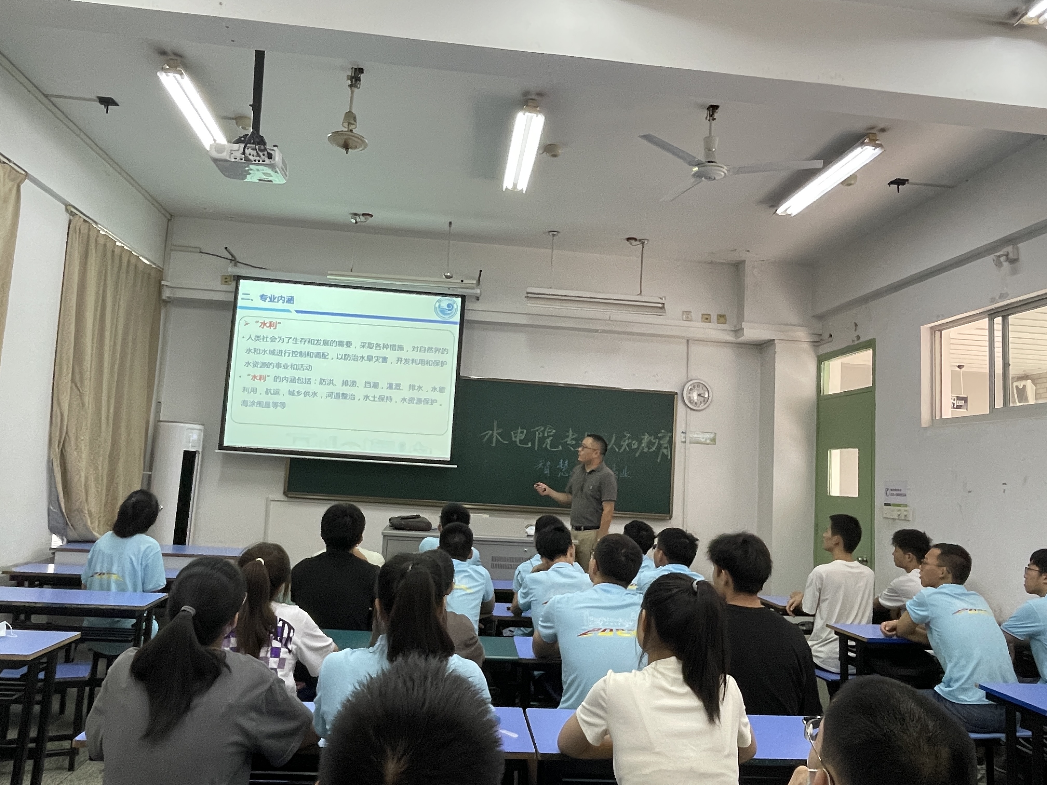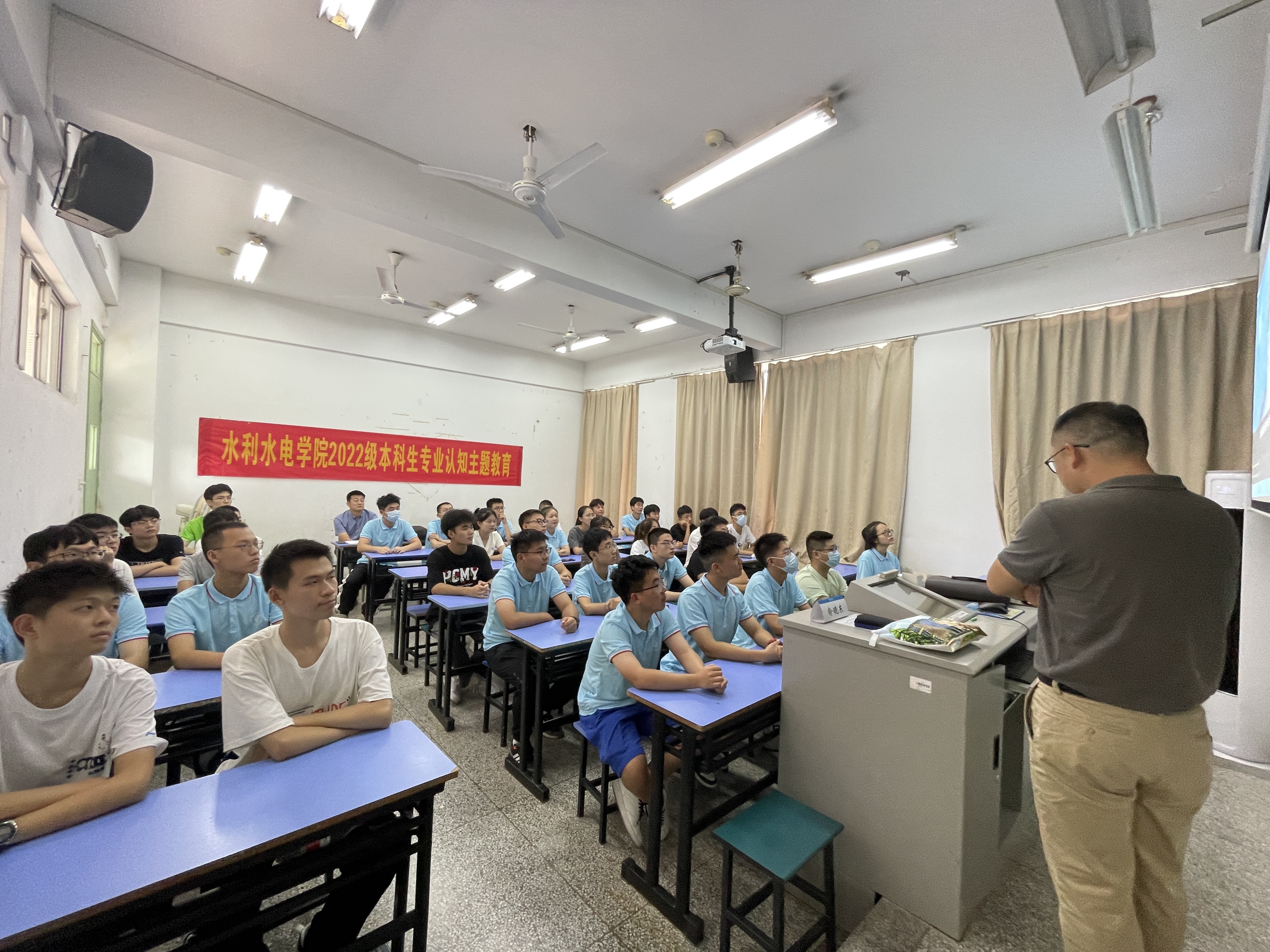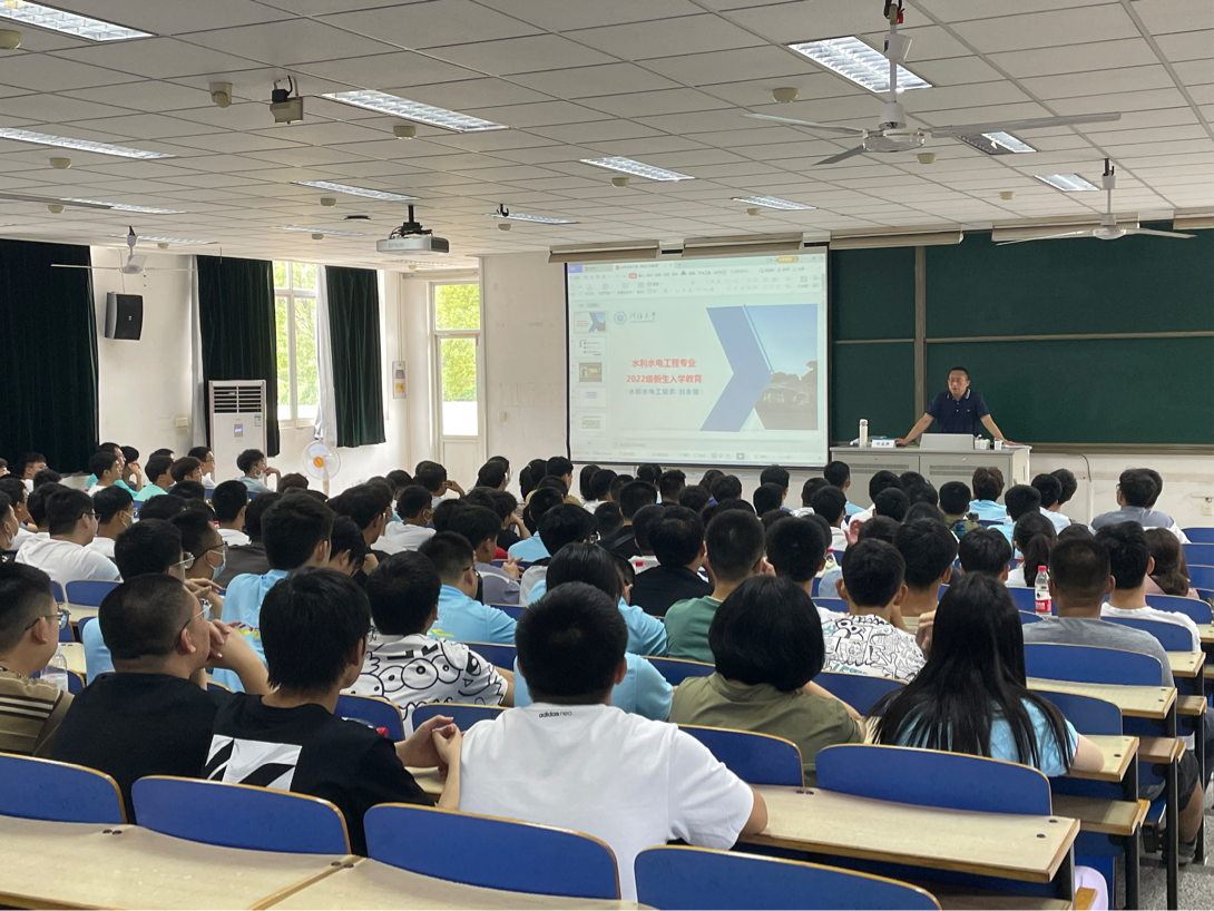 8月29日, 高辣文 开展水利水电工程专业和智慧水利专业专业认知教育主题讲座。水利水电工程专业系主任刘永强教授、智慧水利专业俞晓东教授、22级辅导员姜帆老师出席讲座,全体22级本科新生参加大会。大会由22级辅导员姜帆主持。