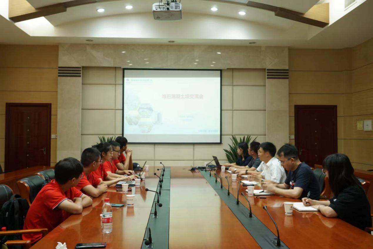 实践团与遵义院相关负责人开展座谈交流。负责人罗键为团队成员详细介绍遵义院发展历程、堆石混凝土的基本情况以及堆石混凝土的效益与低碳评价等。技术专家向队员们介绍了石料开采、堆石过程以及自密实混凝土灌注过程,使实践团成员对堆石混凝土的施工流程有了更加客观的认识。