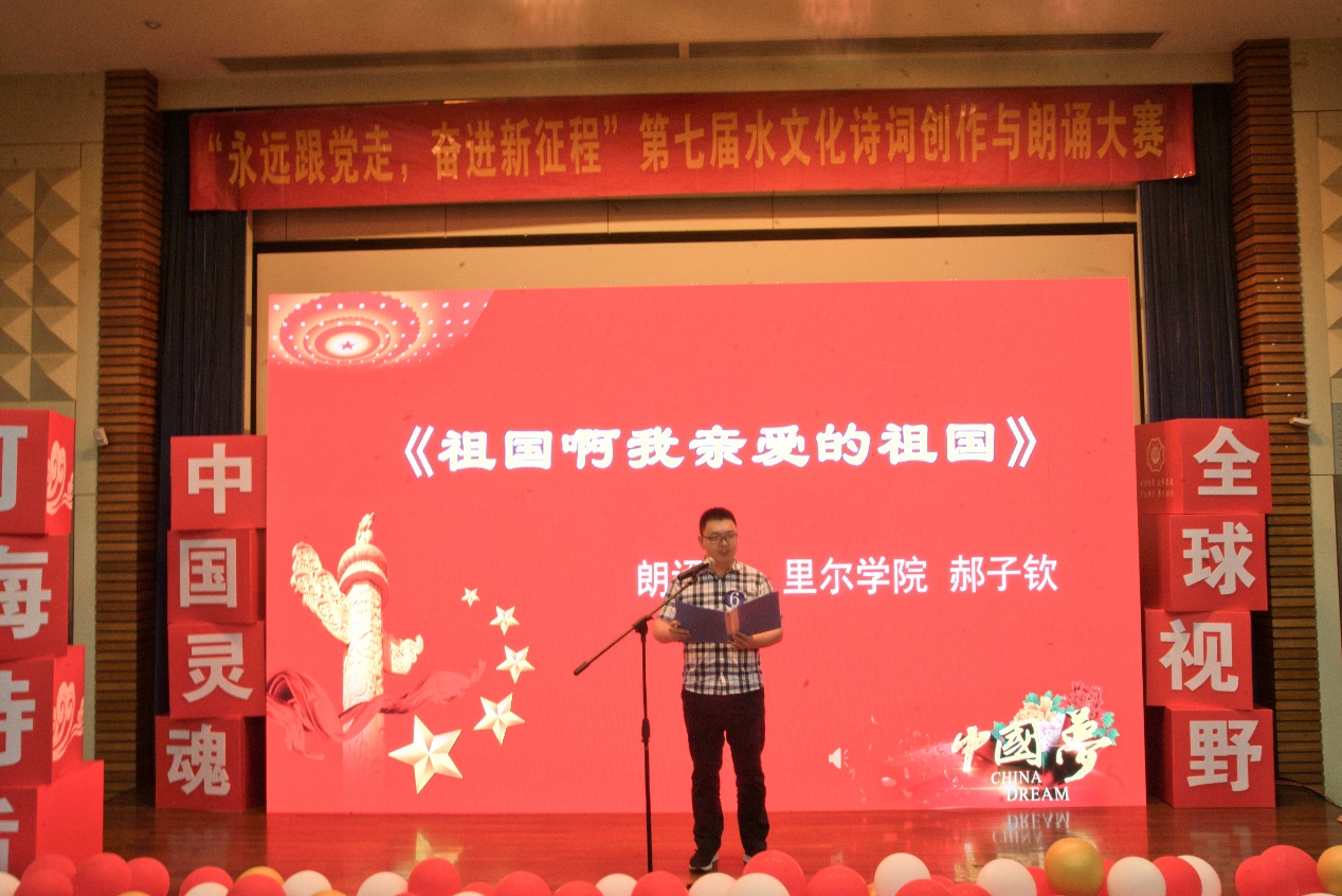 穿越中华民族悠久灿烂的历史文化长廊,诗词寄托着我们对党对水利事业的无限热爱。今天我们高唱凯歌走向复兴,“永远跟党走”步伐流畅;今天我们手挽着手奔向富裕,“永远跟党走”誓言响亮。水文化诗词创作及朗诵大赛作为 高辣文 文化传承的传统活动之一,自举办就深受师生喜爱,在为来自全校不同学院的学生提供交流的平台,鼓励河海水之子们展现诗词风韵与风骨的同时,也推进了“水文化”精神的传承,培养学生综合素质与时代精神契合,弘扬新时代水利人的精神品质。在所有选手及老师的共同努力下,本次“永远跟党走,奋斗新征程” 第七届水文化诗词创作与朗诵大赛圆满结束。(文/袁晨禹;图/李茜、朱弘霖、罗毅、陈泽博、廖培钧)