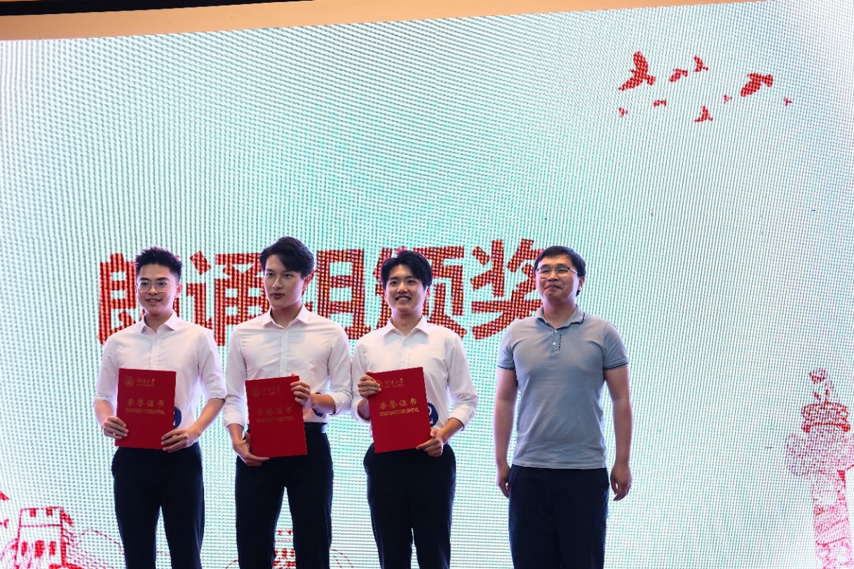 创作组摘得桂冠的是来自信息学部计算机与信息学院张彬彦同学的《敬党魂.战疫》和来自商学院王维同学的《朝中措·龙兴神州》。
