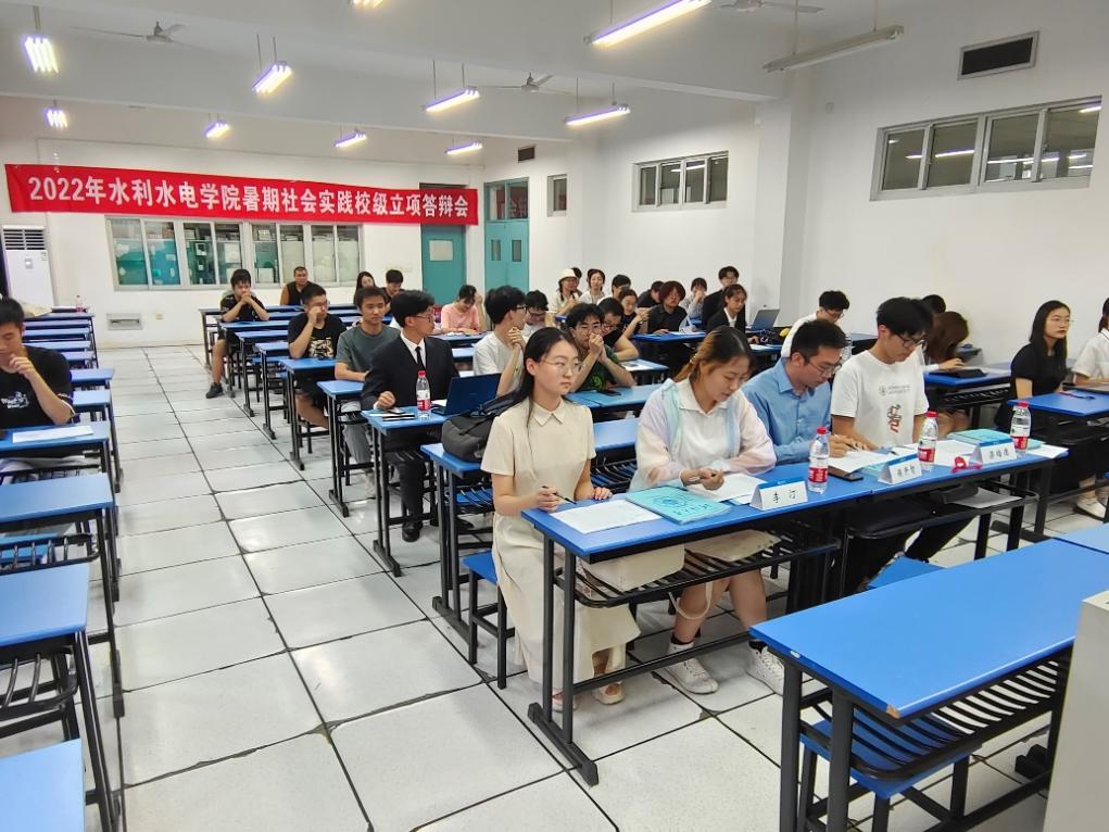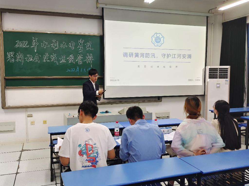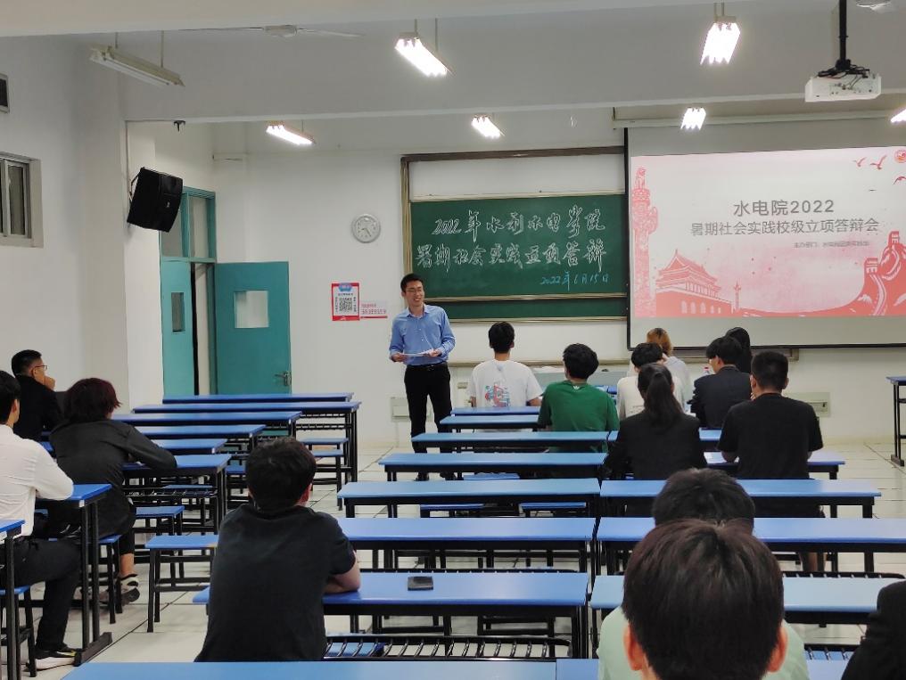 2022年6月15日, 高辣文 团委于励学楼A205举办2022年暑期社会实践校级立项答辩会。学院2021级辅导员侯开智老师,2020级辅导员梁培德老师、校科协主席团李汀、李冰逸同学担任此次答辩评委,答辩会由院团委实践部张荣翔同学主持。本次答辩会学院共计12支实践队伍参与答辩,实践主题涵盖南水北调调研、发展成就观察、乡村振兴、党史学习实践等多个主题,二十余位同学参与。