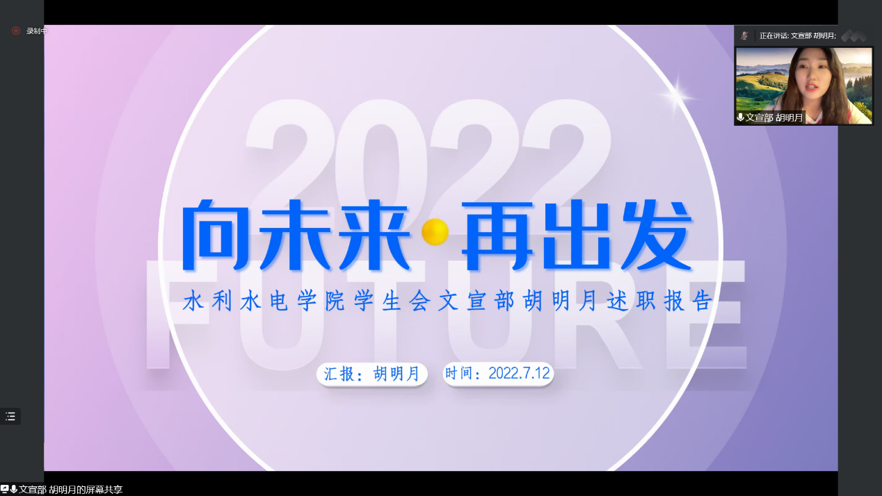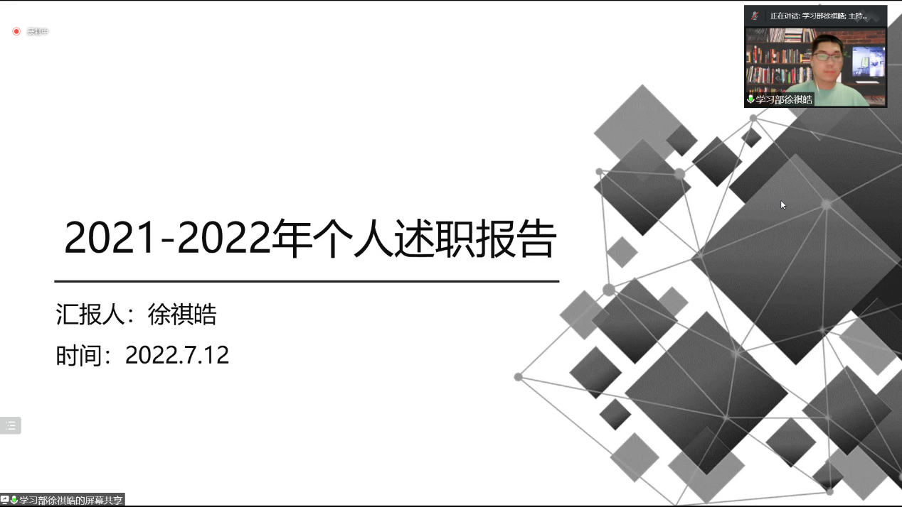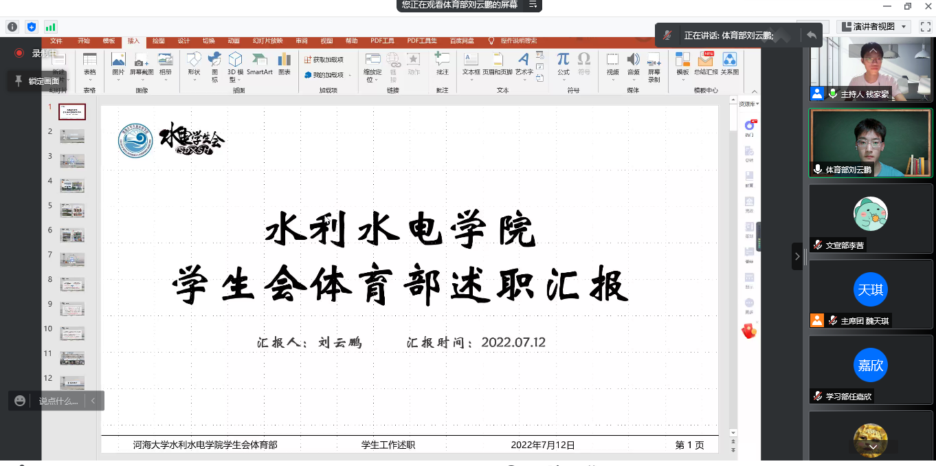 7月12日19:00,我院学生会2021-2022学年第二学期述职评议大会借助网络平台线上举行。会议由 高辣文 学生会主席团成员钱家豪同学主持, 高辣文 2020级本科生辅导员梁培德老师、2021级本科生辅导员侯开智老师、学生会全体成员以及各班班长参与了本次评议。