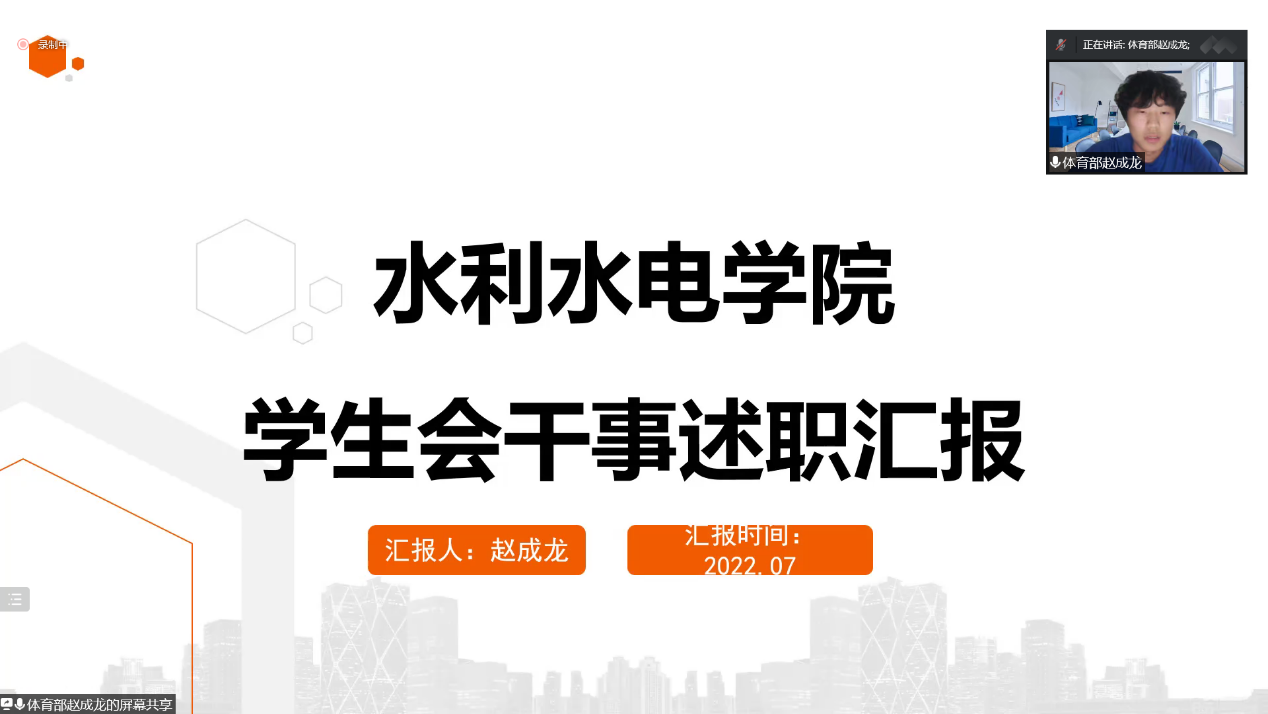 学习部任嘉欣同学介绍了学习部在“刻苦,严谨,求实,创新”的宗旨下开展的各类知识讲座和学习经验交流会,为水电学子们搭建了思想碰撞和学习交流的平台。